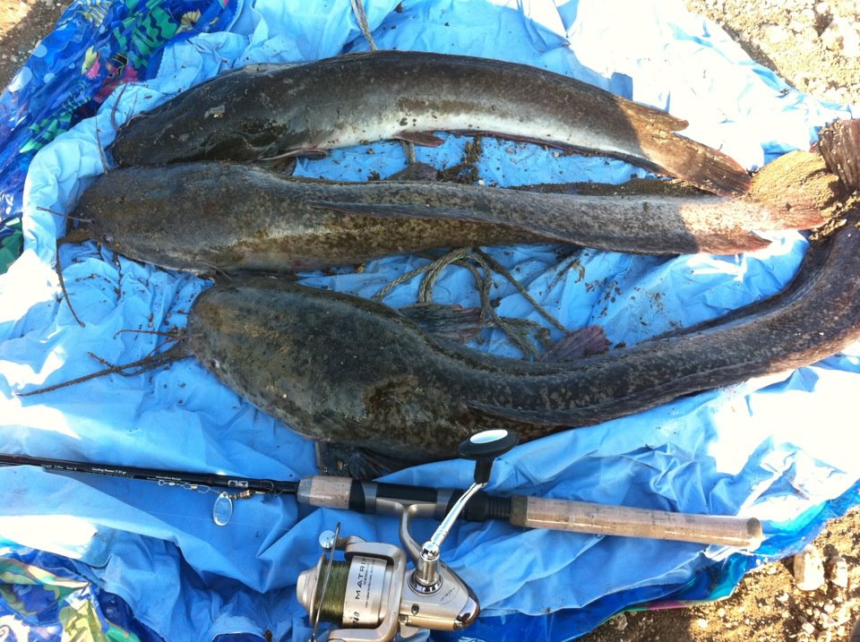 | всем привет, около двух месяцев назад наткнулся на етот сайт и заболел спиннингом друзья все ловят на донки. Удобно, забросил и гуляй. Вообщем купил я спин, назаказевал снастей с neta и начал пытаться хоть чтото поймать. И вот я в течении 2 месяцев брал спин на каждую рыбалку даже заведомо знав что хишника там нет. просто принаровиться и не оставляя надежды поймать рыпа. Пытал счастье на море но пока глухо. А вчера перед работай заскочил с отцом на озерцо возле дома. Закинули удочки и ждать. Я опять достал спин и начал блеснить. Целый час ничего, уже подтягивал к берегу и собирался складывать спин как вдруг сильнейшая потяжка. Стало страшно за "палку" результат сом на 4 кг еще минута и второй уже на 5,500. Взяли на вертушку Reder super spryn. тройник предеться менять