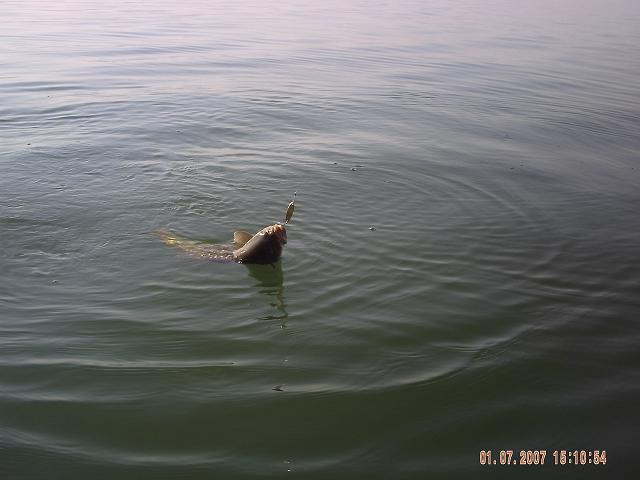 | Вчера с другом(Андрейко) тоже были на пресной воде. Хочу сказать- КМ7гр. и не каких воблеров не надо. Речь конечно идет о Кинерете и с лодки. Зто было с утра около 8-и. А вечером около 5-и были на речке и там уже повеселились с воблерами, особенно отличился ecoger , белого цвета. PS На дату на фотографии не обращайте внимания- просто забыли выставить.