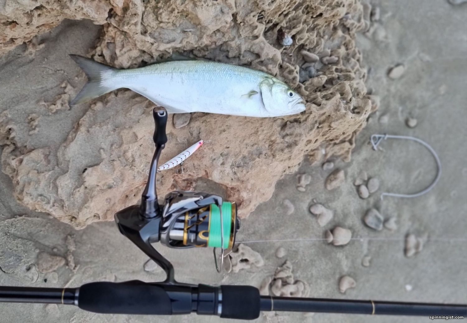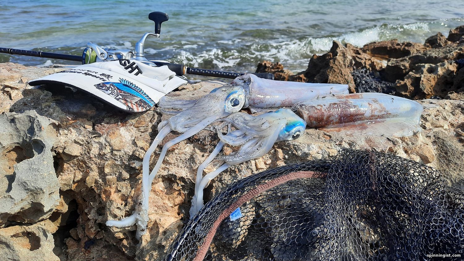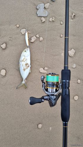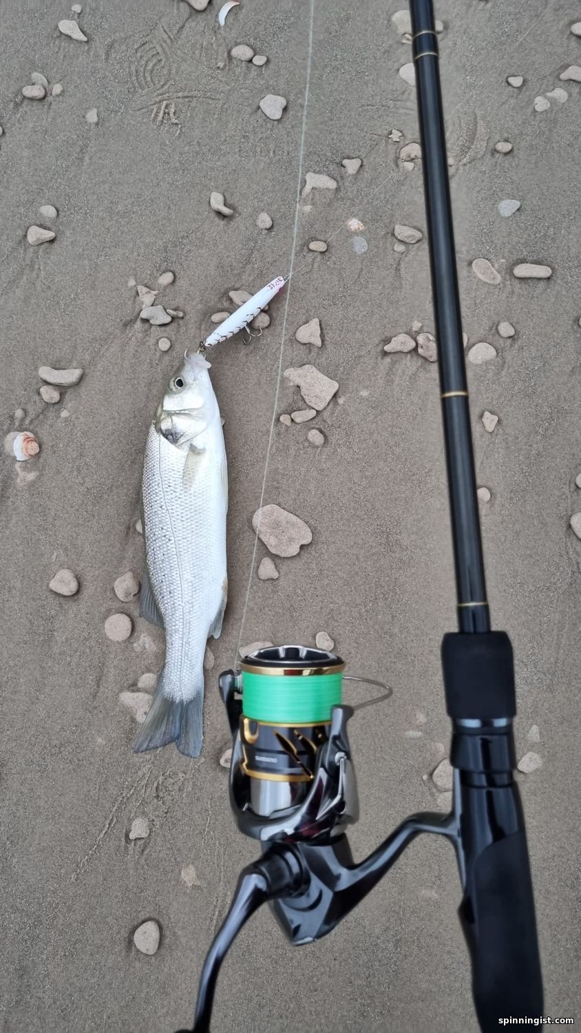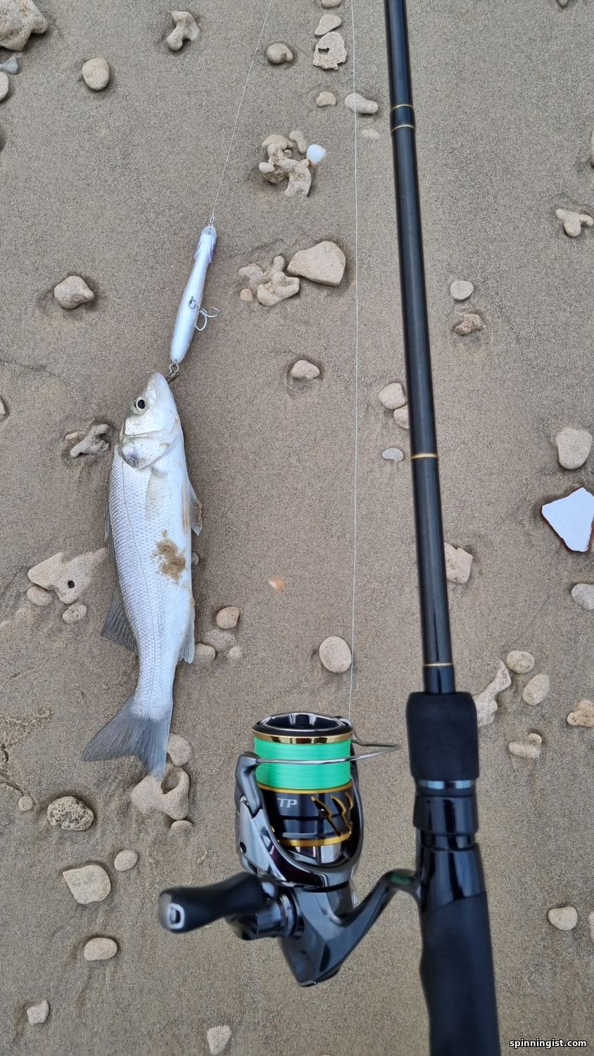 | Утром ,для разгона,поискал кальмаров, волна....Взял палку до 15гр. Маджор Крафт Трипплкросс,нечто универсальное. сначала ничего ,бросал бубу 3.0,разных расцветок.потом бросил просто у берега маленькую 2.5 и вскоре зацепился неплохой кальмар ,а следом за ним и второй .больше в этом месте и в округе ничего поймать не удавалось ,также и на джиги.решил прогуляться дальше на север нашёл ещё одно место, долго бросал разные бубы --ничего ..,отправился ещё дальше, нашёл какую-то лютую обратку решил поискать там чего-нибудь ,а вдруг-лаврак! вешаю свой любимый попкей120 ,первый заброс -ничего,но ,однако опасновато тутотко ,одни ямы,чУдные места,я тут в прошлом году,палец на руке сломал,сдуло волной по горло в яму,экшн,бёныть!  Второй заброс-и улетная серия брызг,-о,эта атака гумбара! Чего он только не делал,плясал по волнам,прыгал,раздувая жабры и страшно негодовал! Красивый,зараза и большой! больше конечно приходилось смотреть под ноги -улетишь в обратку и сам к нему попадешь.вскоре удалось его подтащить к подсаку,при очередном ударе волны, которые уже вообще, там были по пояс ,ему удалось вырваться непонятно каким образом ! Не обидно ,уж больно он здорово прыгал -просто какой-то акробат! выпутывая попкей из подсака, увидел какой-то кусок проволочки ,-непонятно что это такое? Едва вытащил крючки и вдруг увидел что одного тройника просто не хватает ,а эта проволочка -это заводное колечко оригинальное, которое он растянул ,-вот это парень !!!Навскидку ,он был приблизительно 70-80 см . Счастливого ему пути! Алл би бэк!