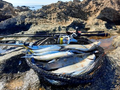 Сарагус категорически отказывался клевать на съдобку, хотя я его в воде видел. Вообще такое ощущение, что зимой он ест что-то другое. Надо пилоту попробовать на джиг насадить. Коллега рядом поймал хорошего саргана, но он кидал сильно дальше, чем я.