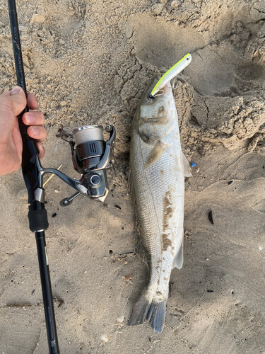Поехал на море с семьёй, взял удочку, ничего не ожидая — для соблюдения проформы, так сказать. Совершенно неожиданно, на вечерке, влетел отличный, вполне полновесный товарищ. По классике — под самым берегом, в волне, прямо перед заходом солнца.