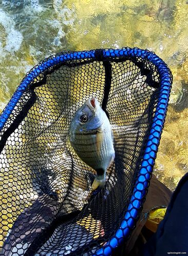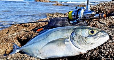 | Только где-то в 8:30 добрался до моря, волны , иногда,были довольно опасные,частенько приходилось отбегать вскоре последовала поклёвка.Рыба довольно сильно сопротивлялась,форсировать не приходилось,особенно,если учесть,что плетёнка была 008 поводок 0,14 . Террахон! Дальнейшие поиски рыбы ни к чему не привели,да и волны,что то распоясались.