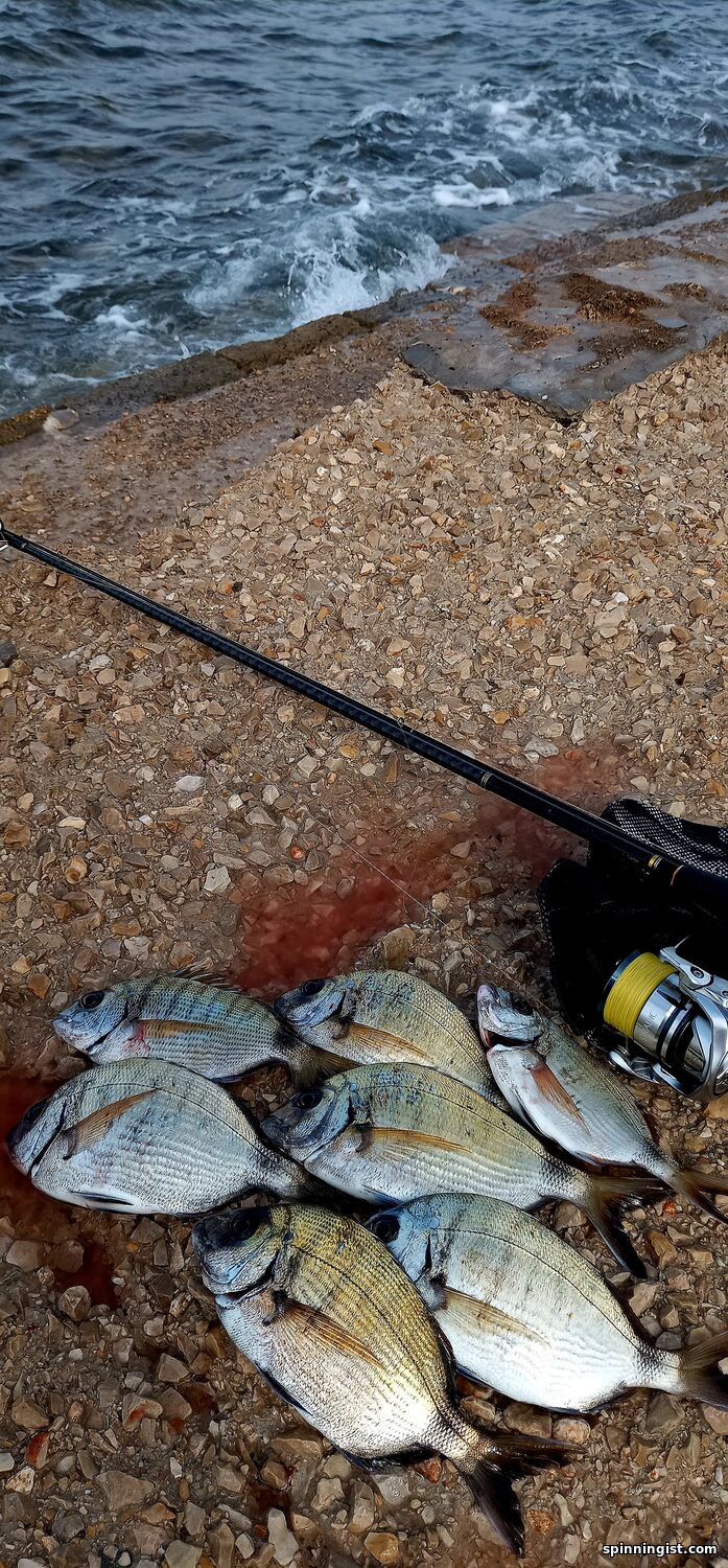 | А он что,разве ещё не настал? Раньше кошмары были когда засыпаешь ,теперь- когда просыпаешься.... Пока ураган Байрон, не накрыл богоспасаемый город Акко,я решил проверить, а что же происходит на море? Оказалось, что, в преддверии разгула стихий, клевали одни только сарагусы! Они радостно набрасывались на мой хлебушек и -только успевай неистово вращать! Маленьких я выбрасывал ,а больших складывал в баночку из-под майонеза....