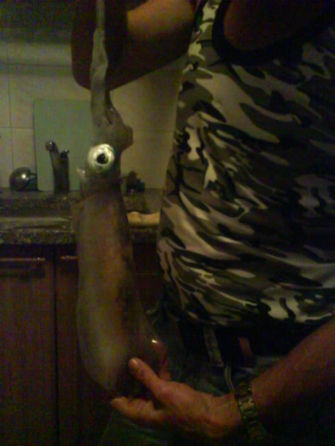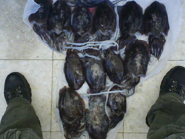 | Пару дней назад, по просьбе VOV-a-взять его с собой и показать как ловят кальмара, созваниваюсь с ним и говорю, что море многообещающее и у меня есть часок. Как всегда бывает в таких ситуациях, падаем в грязь лицом. Ни кальмара, ни хрена. Хотя у "ученика" был один сход. Я списал всё на то, что они ещё не подошли после высокого моря. Сегодня решаю взять реванш, но думаю перед тем как падать опять в грязь лицом, схожу один. Вовчик прости меня. Но я ещё раз убедился, что техника описанная мною работает на ура. Благо из-за обильного присутствия объекта ловли можно было легко это проверить.