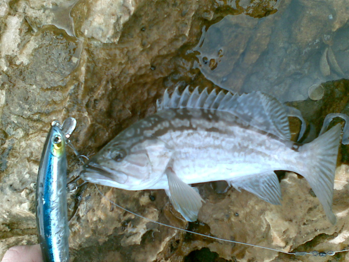 ну в общем-то всё было достаточно прозаично, с вечера забили стрелку с Мариком(swimmer), на 5 утра, по прогнозу предсказали неплохое море, волна до метра ну и т.д... , надо сказать, что это был запланированный, второй выход с ультралайтом на крупняк, а первый состоялся , если не ошибаюсь, неделю назад, тоже с неплохим результатом, лаврак 44см. А запланированный, вот почему, так как моя палка имеет тест от 0.8 до 9гр, то есть захватывает 4х- грамовую лайтовую зону, то я подумал, а почему бы не использовать это возможность и не покидать "взрослые" приманки типа: bassday sugapen 95f 8g (снизил вес до 6.5г установкой меньшего размера колец и тройников), komomo sf95 slim 6g (оставил без изменений) ну и ещё несколько приманок, кстати, оба раза отличились komomo sf95 slim, короче IMA рулит, цвета 003(фирменный, любимый Андрея(sandlar))и 008. Встретились, как и договаривались, в 5, быстрые сборы и на берег, по дороге я Марику и говорю: "короче, у меня запланирован на сегодня лаврак на 5кило" сказал и сказал, прикололись и пошли дальше. Встали там, где каждому подумалось что именно это место перспективное. Начал с sugapen 95f, несмотря на внесённые изменения, работает замечательно, погонял его около получаса, но рыба он так и не принёс, ладно думаю, поменял место и поставил komomo sf95 slim 003, первый... второй заброс, потяжка палкой в среднем темпе на полметра затем подмотка плетни... и... ЗАЦЕП