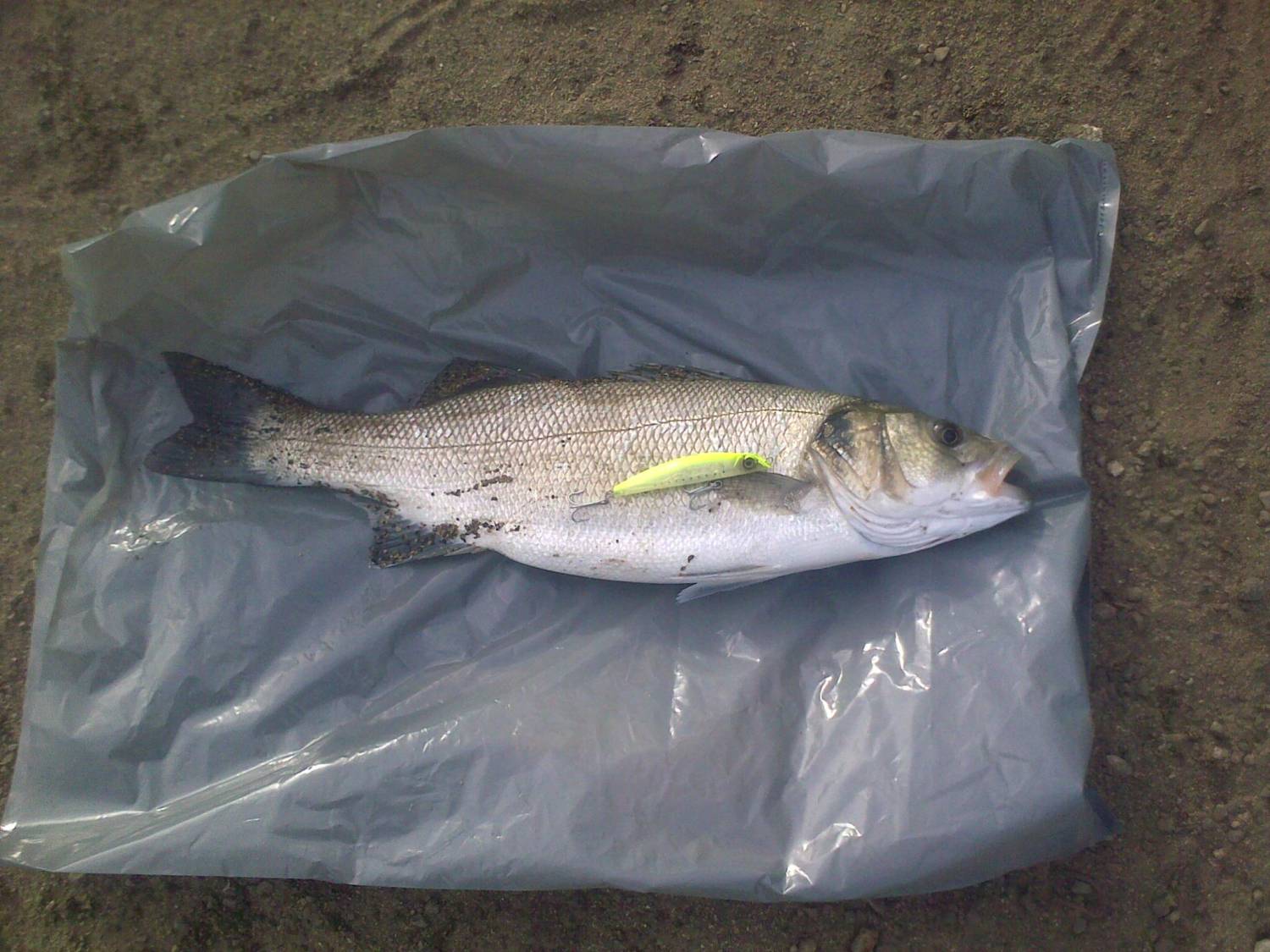 Перехожу на место поглубже,камушки на дне,песочек красота.......дальний заброс,начинаю проводку через 10 метров долгожанный всплеск и потяг,6 минут борьбы и лаврак на берегу,несмотря на свой небольшой размер 39см,дал отличный бой,т.к зацепился за тройник жаберной крышкой и все время шел боком ко мне.