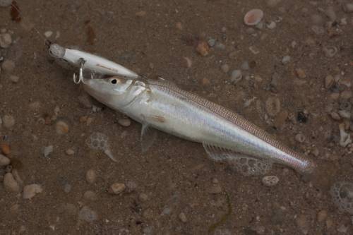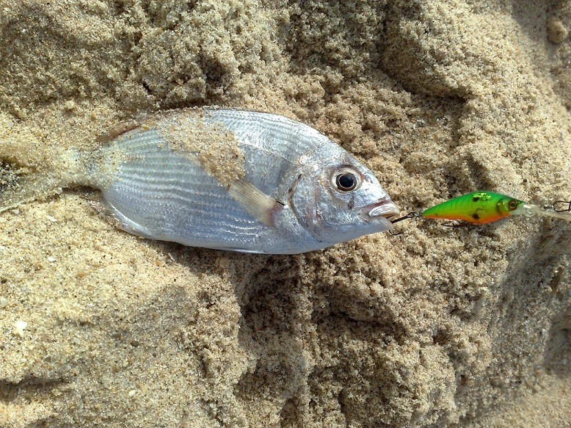 | В 5:15 Я и Ханиель(Mighty) договорились встретиться на море.Собираем циюд и в 5 30 первые броски,море сегодня рабочее,интернет не соврал. 15-20 минут полоскания воблеров ничего не приносит........у Ханиеля отстрел саммика 115,и пока он перевязывает поводок ставлю свеже испеченную комомо slim и на 3-ем забросе при зависании примаки в струе уходящей от рифа воды подача.....спин в дугу,но хрюшка делает рывок,прыжок и свечу,мотая пару раз головой сходит,даже не успел сделать вторую подсечку..... Потом долго ничего не было,у обих......и тут я замечаю малька прыгающего как наши сабачки по воде от кого-то удирая......не долго думая,бросок и сразу же поклевка,на верное попал прямо врот ,2 минуты борьбы,больше с волнами чем с рыбой,и пятнистый взят в плен. Потом начались наши с Ханиелем купания,меня протошило по рифу,и я хорошенько разодрал руку. В 8:30 Ханиель,разлавливая 56 ридж получает поклевку,и на берегу еще один пятнистый,странно никогда в том месте их раньше не ловил..... Потом уже пытались всеже разловить сарагусов,но они сегодня ленились и было много холостых аттак.... все что поймано делим на 2.......... p.s мы знаем рыбные места, просто рыба их не знает