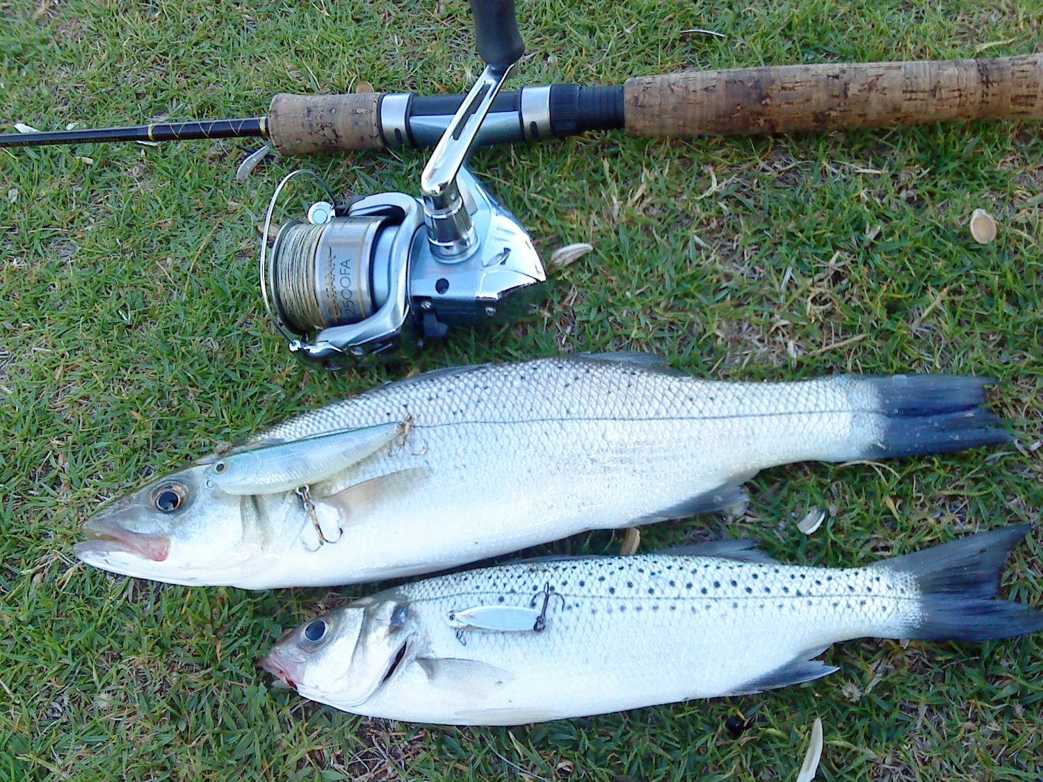 | Engoi | Дата: Суббота, 24.04.2010, 09:42:06 | Сообщение # 16 |  |   Группа: Спиннингист Сообщений: 511 Статус: Offline | Вчера решили что пойдём на лаврака, утром встретились на месте и разбрелись кто куда до рассвета у меня тишина никаких признаков жизни и я решил подойти спросить как там у них  подхожу смотрю Лёша проводит топ вотэр ББУМ удар и сход явно лаврачий выход  мне сказали что такое безобразие у них уже не первый раз, я становлюсь рядом ставлю 65 саммика несколько проводок и пятнистый лаврачок на 33 см успешно выведен (очень давно у меня не было рыбы и решил его взять  ) после этого, пол часа было тихо пока я не поставил маленькую силиконку с джиг головкой несколько проводок и прям под ногами выход с ударом но не засёкся переставляю на 3 гр КМ первая проводка Бум удар подсечка сидит этот воевал посильнее чем предыдущий хотя и меньше, минута борьбы и этот удачно приземлённо но не удачно засёкся в замок