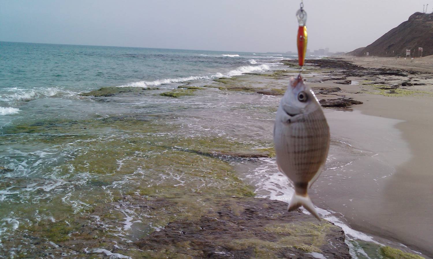 | С 18:00 до 20:00. Вышел на море без какой либо мысли что то поймать,потому что по погоде видно-море не ахти,а просто пройтись развеяться. Море не высокое,волна под 60см,в воде больше салата из водорослей чем воды.... Сарагуса визуально не было видно вообще,но все же выпросил 3 поклевки на дальнем забросе, с небольшим твиччингом,но не один из "хеврей" до берега не дошел. Как только дошел до рифа,начались поклевки мелкого локуса,которые просто не давали сарагусам шанс.... За 2 недели я на этих засранцах уже потерял 3 zipbait-a.