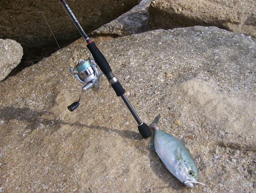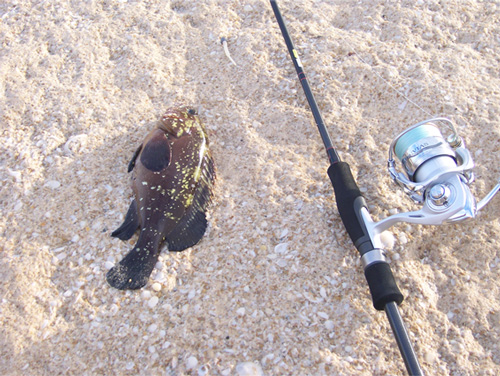 .....лаврак должен присутствовать. Но прошёл с километр по песочку и без единной поклёвки  дошёл до рифов и снова мысли  ...... ну хоть локусов натягаю, минут 10-ть бросаю приманку и вот долгожданная поклёвочка, подсекаю и чувствую что-то уперающееся не по детски, снова мысли покоя не дают  ..... локус или лаврак с килограмчик, но никак не мог подумать, что это может быть сарагус. И вот мой первый сариг 24см.  наверно потому что мне никогда ещё не приходилось ловить сарагусов, поэтому я и не мог себе представить, на сколько силён этот малышь   |  |  |  |  |