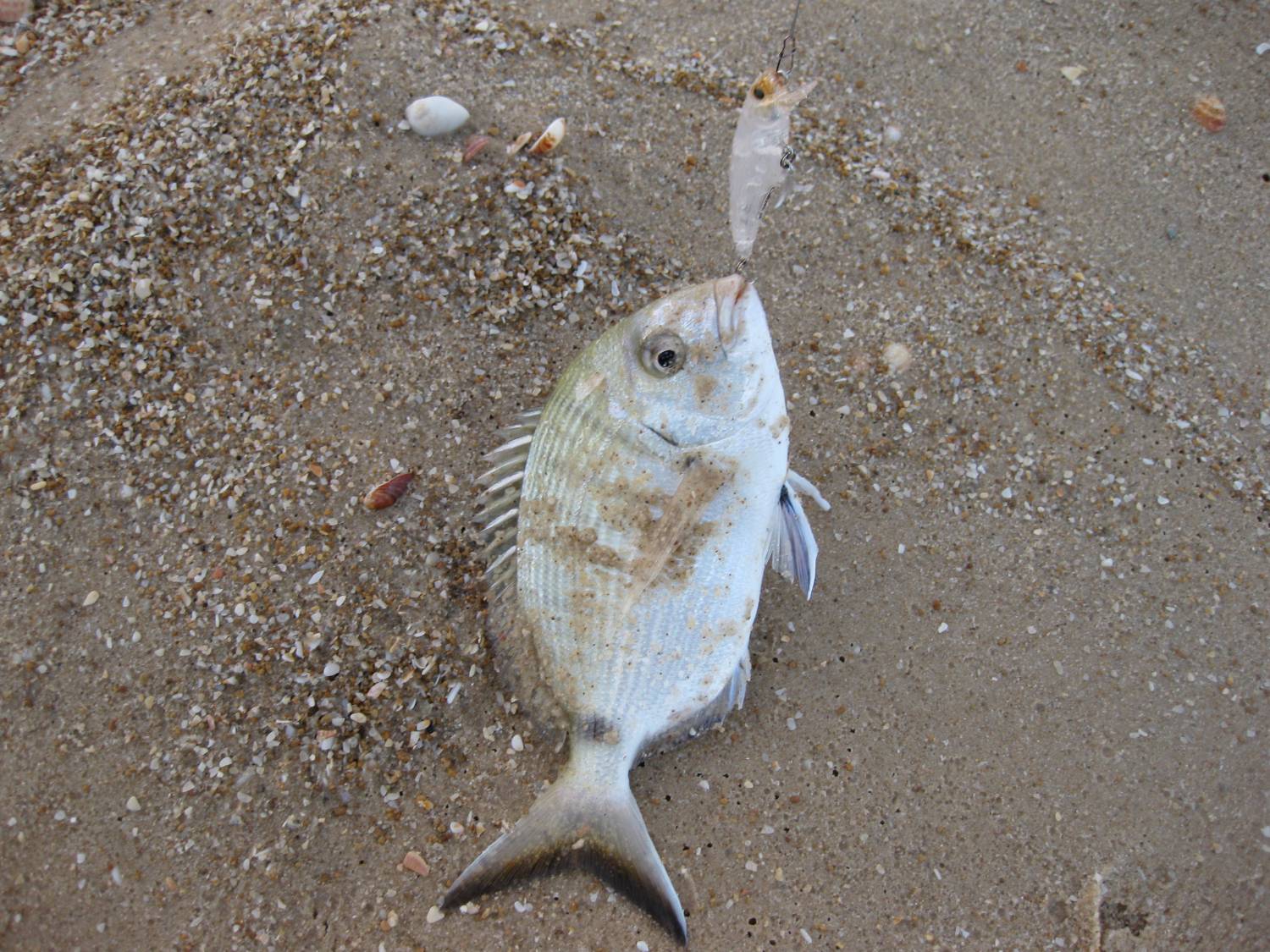 Сегодня приехал на море позновато,в 6:30 волна,слабый ветерок,кайф.Выхожу на пляж стоят кактусы а уних у каждого по лавраку,и не маленькому и у их соседа аж целых 2....Губу закатал и пошел по сарагусьим местам,клев сегодня был не ахти,в основном,не большие локусы,поймал около 10,эти засранцы не дают сарагусу время на раздумье,сразу хватают и тащат в нору.........сегодня без потерь.