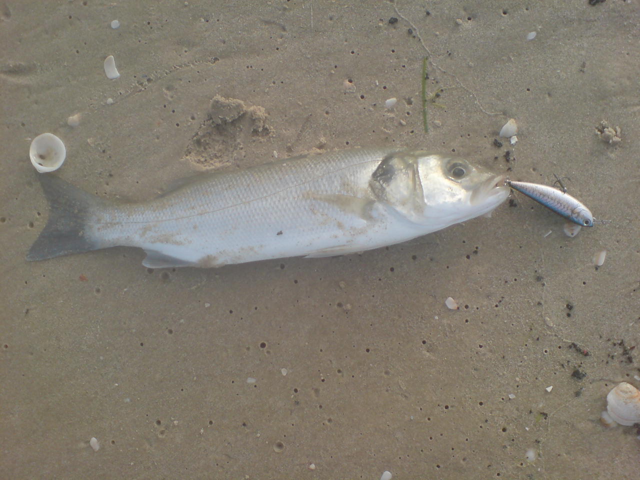 | Юрчик | Дата: Пятница, 04.06.2010, 18:05:00 | Сообщение # 2 |  | Группа: Спиннингист Сообщений: 591 Статус: Offline | привет. что сказать, море утром было приятное, лаврачье (хотя в этом году в бат-яме лучше когда штиль) шол себе потихоньку полоскал пласмас, смотрю кто-то валяется. подошол, ой да это дружбан фуга на пару кил (значет кто-то здесь уже побывал) вышел на одно местечко, лаврак там есть почти всегда, но за сорок только один раз там брал. как положено на самой выгодной обратке стоит доночник, ну нечего прошол чуть дальше, поставил последнюю камому 95-ую прозрачную с зелёной спиной. забросе на третьем или четвёртом удар, подсечка, сидит. вывожу, сопротивление почти никакого, странно всё-же чуть за тридцать, пока достовал телефон пока фотал он совсем не шевелится, думал покалечил. поднял, нет крючёк в губе. даже вынимал крючёк он не дёргался. ну правдо как попал в родную стихию шмыганул резво (стратегия у него токая, чтоли? )