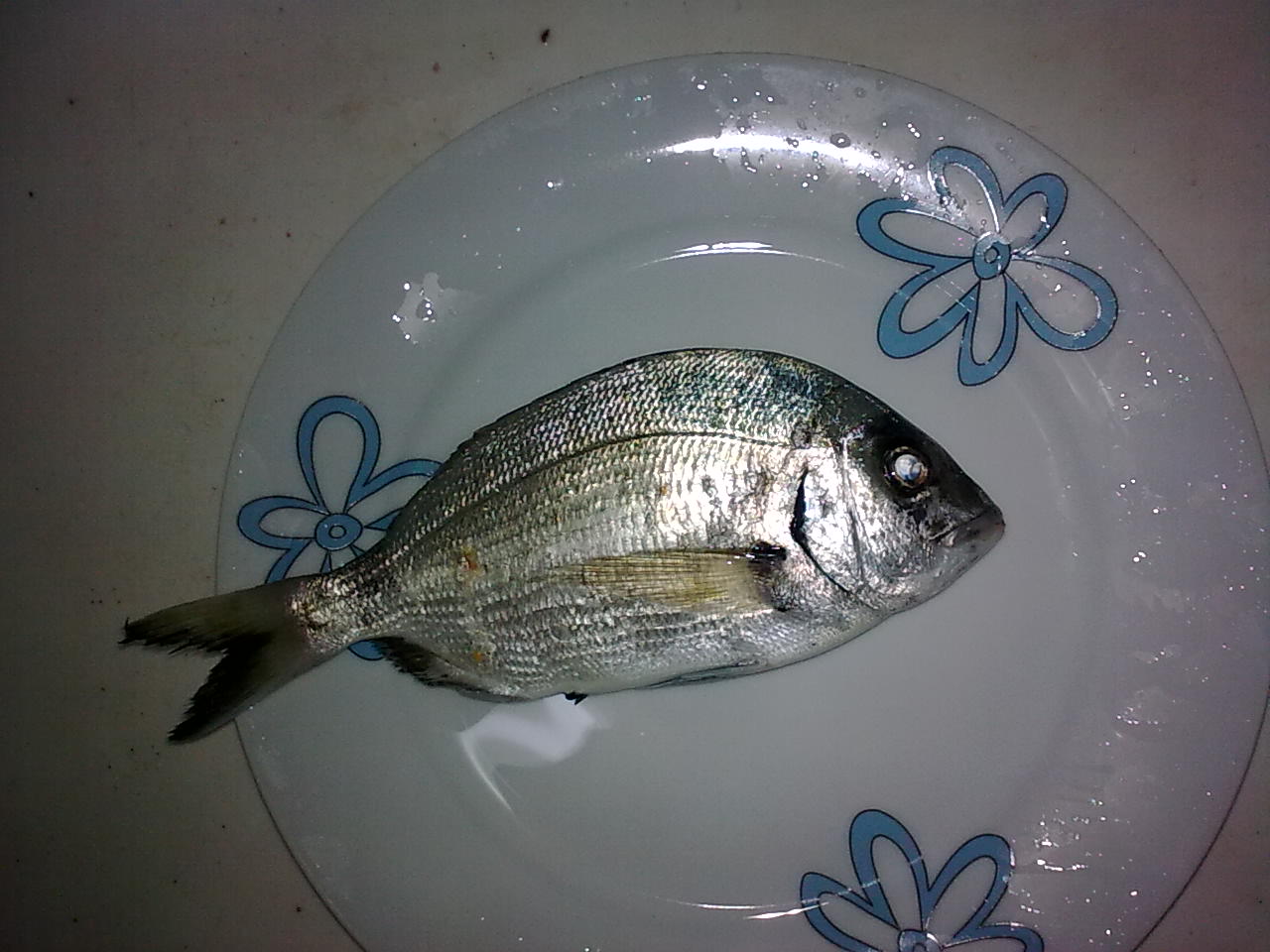 Но,все уходят вперед,а мы с Ханей,медленно но настойчиво пытаемя соблазнить сарагусов,хотя они сегодня клевать не хотели.....в один из моментов,у Ханиеля на мелководь зацеп...но через пару секун зацеп начинает двигаться и плюясь выходит вот такой красавец.......фото и отпускаем в море