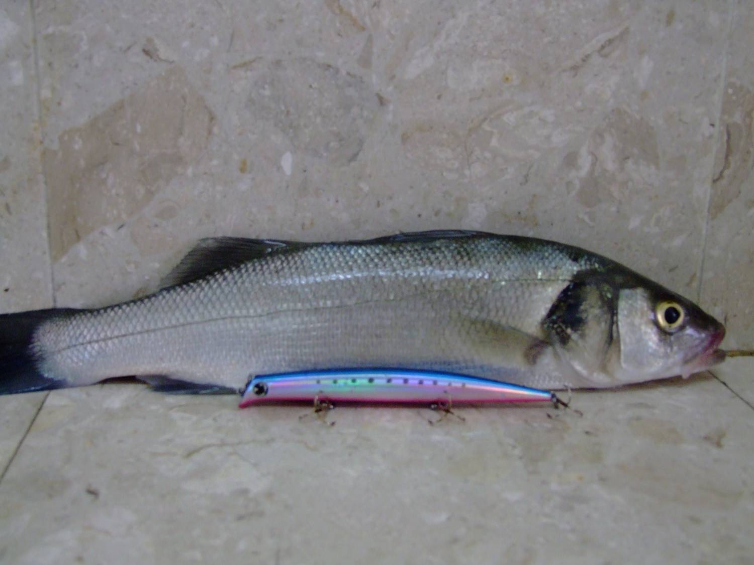 | nonstandard | Дата: Пятница, 09.07.2010, 12:37:36 | Сообщение # 5 |  |   Группа: Спиннингист Сообщений: 140 Статус: Offline | Моя первая рыбка-лаврак,лаврак-моя первая рыбка   Я новичок и такая удача!!! Сегодня,наверно,раз в пятый,как вышел на море.Цель- научиться правильно и далеко забрасывать.Встретил знакомых ашдодских ребят Сашу и Лешу.Огромное им спасибо-обьяснили,показали,проконтролировали.Лаврак ударил под самыми ногами,в метрах двух от берега.Напал на меня из под самого рифа,гад!!! За что я ему и благодарен