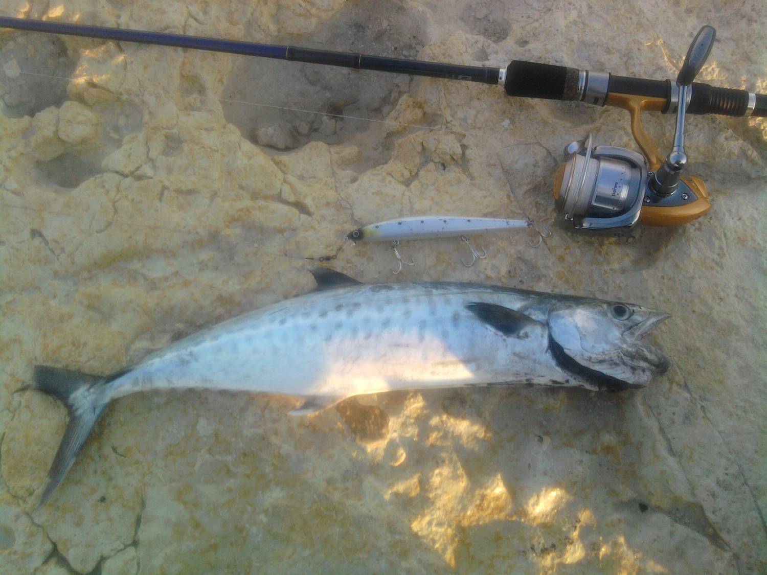 | сегодня я всё таки поймал её))) наконец то обрыбил и палку и катухер и воблер's - первый рыб на спиннинг!!! напьюсь ))) рано утром вытянул сабиду и калямаров , в районе 5 какой то маленький дикий кашак спёр сабиду прям из рюкзака... и на рассвете согнулась палка - вот она эйфория))))) 5HT попёр в мозг! а я уже думал, что рыб в море этом не т)))