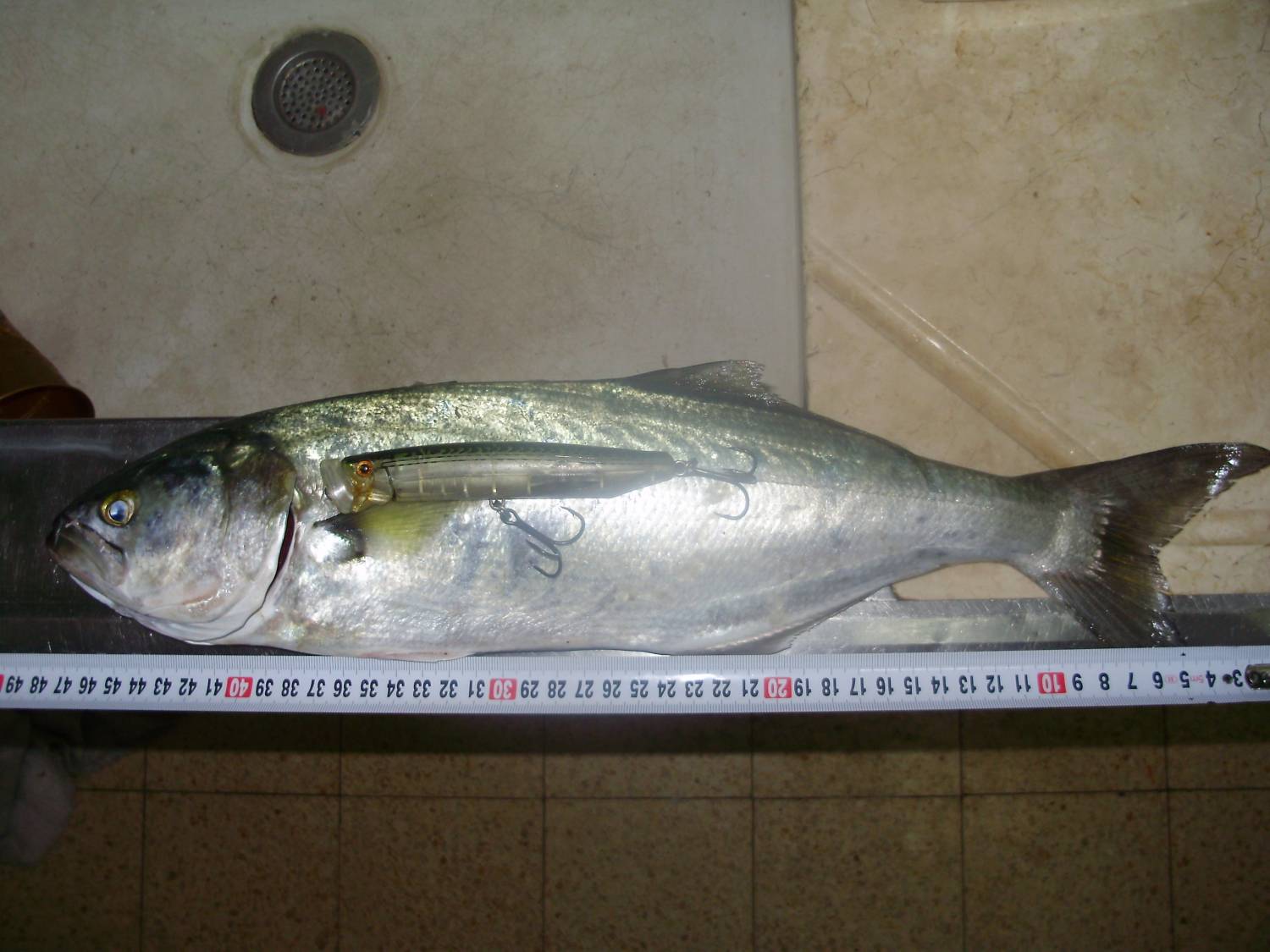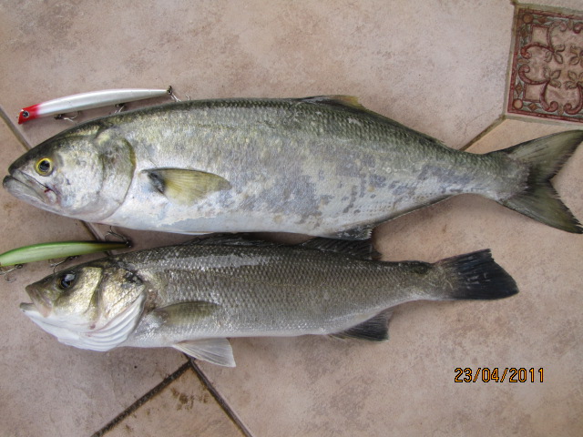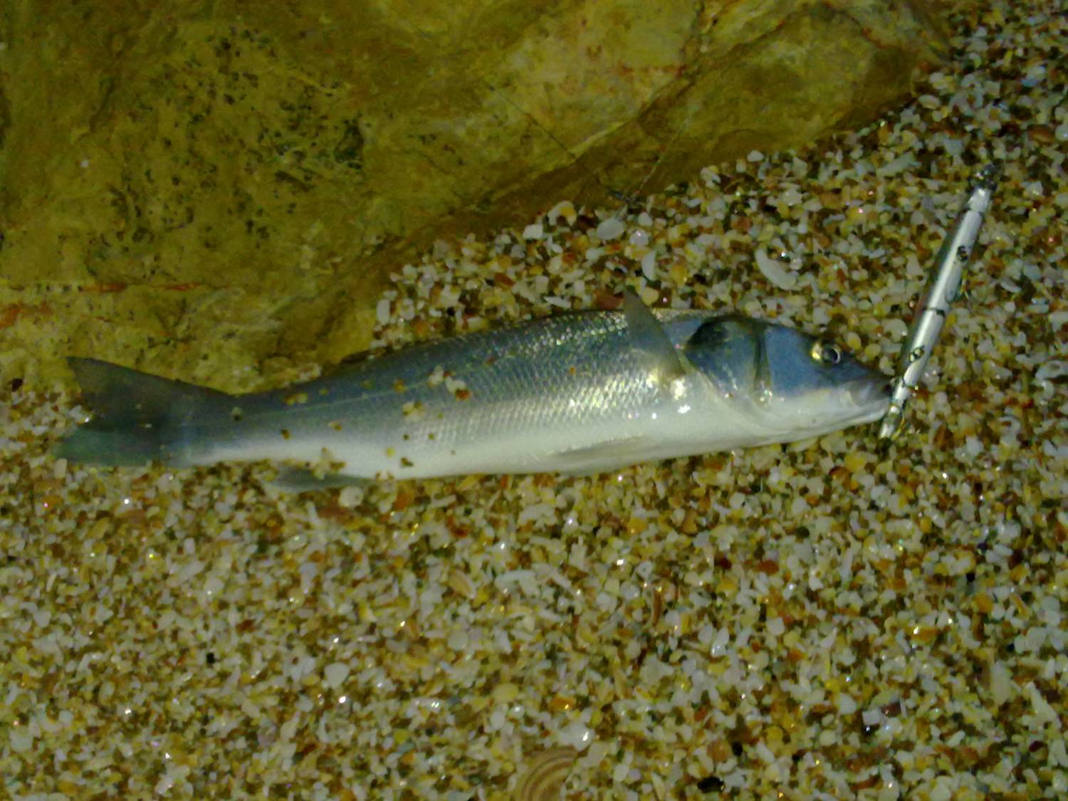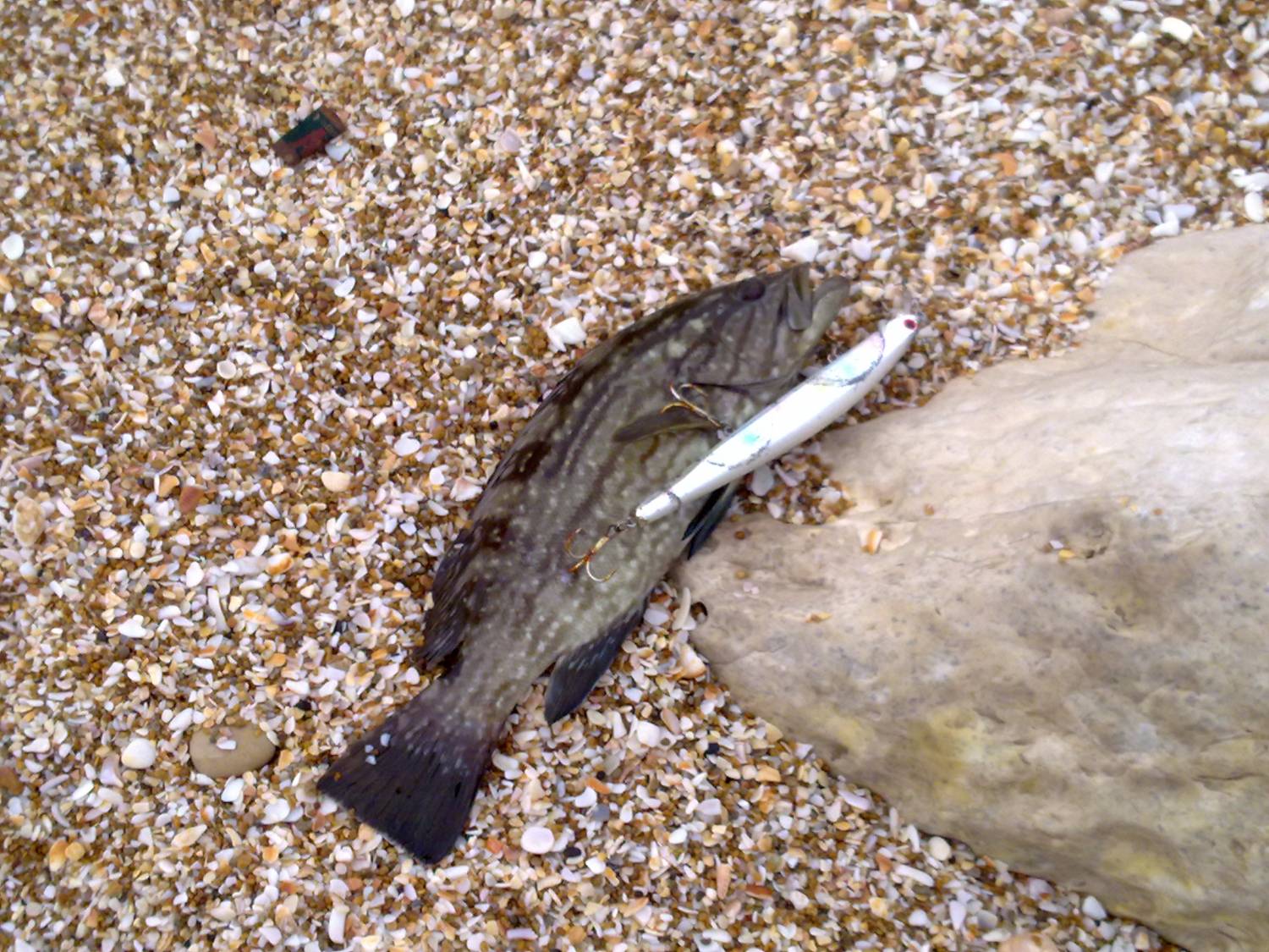 | специально рано ушол с моря, что-бы после десяти вернуться посарагусить. вернулся, поставил плетню 6 либров, и вперёд, проверил камомой обратки, лаврака нет. дошол до сарагусьего места. заброс, проктически сразу паклёвка, но не засёкся, тяну и думаю, что-же ты не добиваеш. смотрю (кажется малёк тарахуна, сантимов по десять летит в рассыпную) вижу смутно силуэт, печёнкой чую, не лаврак, гумбар. срочно меняю плетню на 20-ть либров, поводок7*7, попер феед 30.5гр. заброс удар на втором твиче, минута возни и гумбар в руках, пакет съел, бросаю прям в сумку, заброс, в паре метрах от камней атака, промах. ну на этом экшен закончился. что сказать, удачно посарагусил. помимо всего прочего, это мой реванж, до этого было только две встречи с гумбарами, обе в их пользу. первый гумбар и если не ошибаюсь первая рыба на попер. 47см. безмен показал кило сто. но это примерно + - 200 гр.