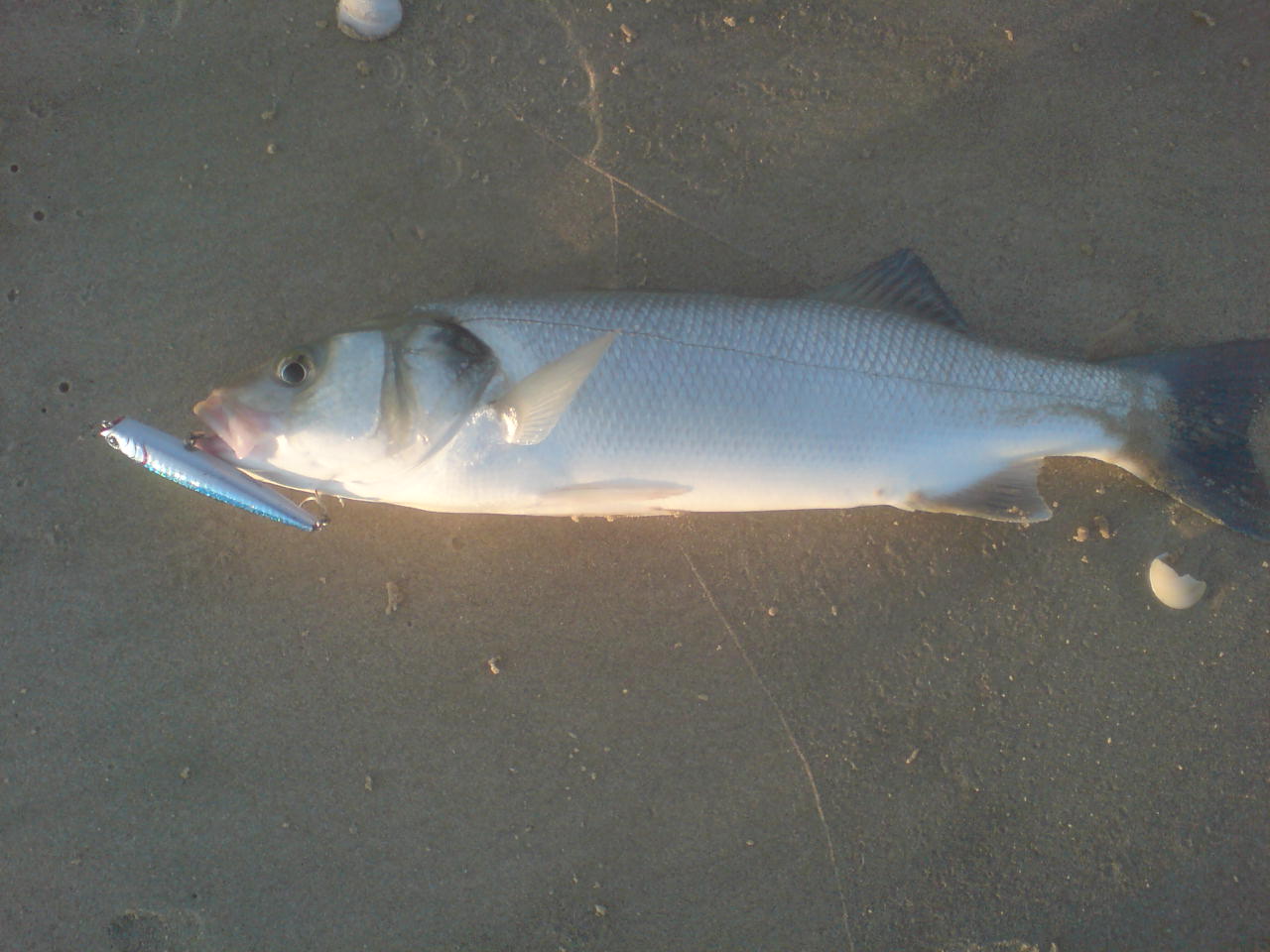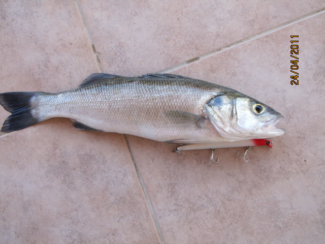 | Силикон - это наше всё! Прочитал Мишин рассказ и решил добавить от себя пару строк. Приехал на точку поздно и увидел, что все забито арабско-поплавочно-доночной компанией. Пока я сидел в машине и раздумывал куда податься, то они слава богу начали собираться. Один подошел ко мне и сказал, что рыбы тут нет (типа каток ), они здесь с часа ночи, и ни одной поклевки. И черт меня дернул сразу полезть на риф не дождавшись пока они уедут. Сначала увидел атаку на вандер, промах. Потом еще один холостой всплеск под ногами. Тогда решаю поставить что-нибудь помедленнее - т.е. силикон - и на первом забросе в пяти метрах от рифа удар, свист фрикциона, и лаврак у меня в руках. Дальше всё развивалось в течение нескольких секунд, эта компания как десант выпрыгнула из машин и снова забила все места, пока я убирал лаврака в пакет. Еле успел снимок сделать и убежать от навязчивых просьб продать им силикон. А заливчик этот они перегородили своими донками, как лазерная сигнализация в ювилирном магазине. Понятно, что лаврак увидев такое количество канатов, попрыгал еще немного через них да и ушел к невским рыбакам (см. отчет Димо )
