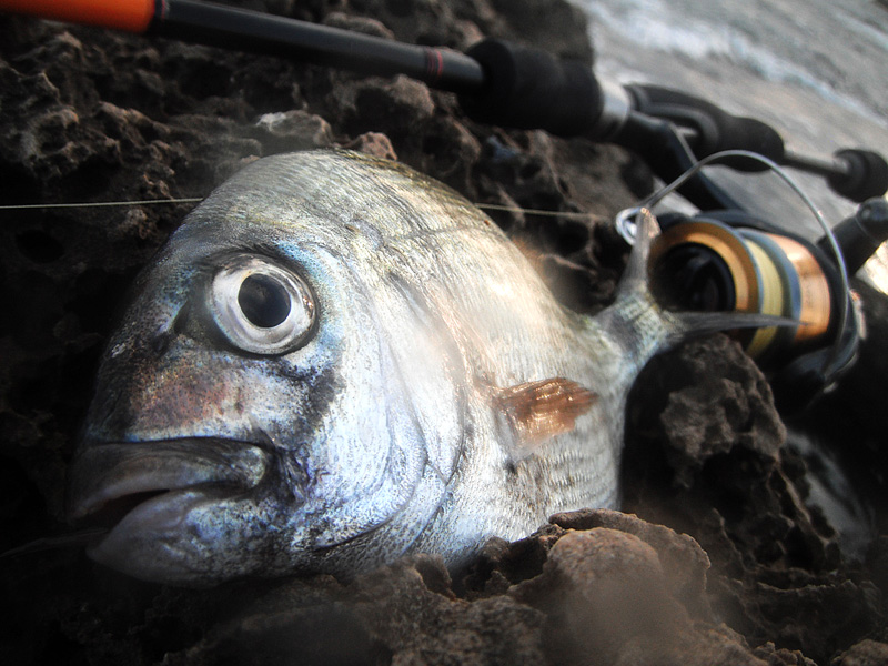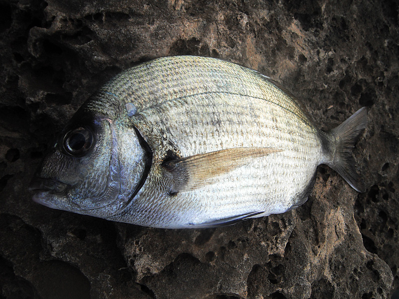 | Слабоватый сегодня был день, волна лупила так что думал снесет в море. Поклевок почти не было. Хотя кое-кто словил сарагуса переростка.