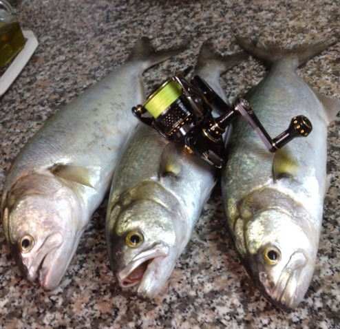 | Сегодня перед работой сходили на рыбалку с другом. (тот,который купил у Бахара -Холон Daiwa morethan BRANZINO ) Другу сегодня повезло больше.У него 3 гумбара,а мне выдали лаврика.