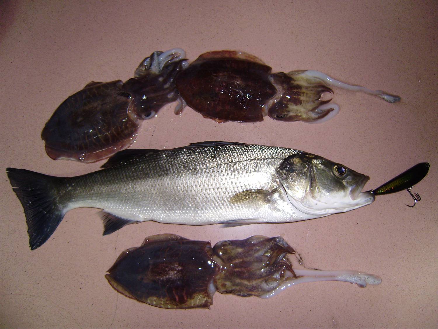| Сегодня в 18-00 вечера был на берегу, пополоскал воблеры и перешел на сабиду, поймал трех сабидок море разбушевалось.Хотел идти домой, но передумал и перебрался в тихий закуток освещенный прожекторами. Через пол часа заметил как мелочь стала волочиться за моим самиком, я понял есть какая-то движуха. И вот заброс и в 15-ти метрах от меня просто фонтан мальков и конкретная точная атака лаврентия, минуты три был бой, и вот мой первый лаврентий идет на ужин. Взял на самика 95. Вес его 1кг. Спасибо Рафику за правильный показ проводки самика, урок не прошел даром.