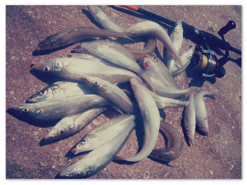 | Дурной пример заразителен, поэтому незапланированно попав на море около 10 часов (и час помокав приманки впустую), я с горя подчистил за Владимиром телевизоров. С 11 до половины первого клевали шо дурные. И, главное, крупненькие все, упитанные. От некоторых поклевок аж тормоз (пусть и расслабленный) взвизгивал. Полтора килограмма наковырял на сковородку.