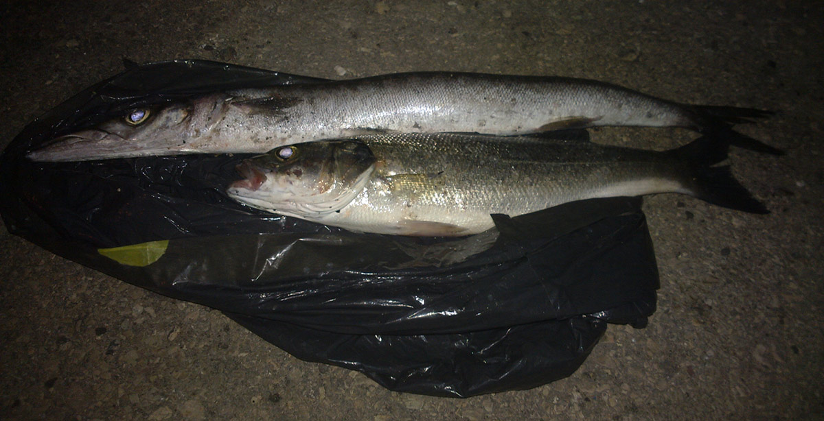 | Несмотря на зверский северный ветер, движение было видно, как до так и после заката. Лаврак небольшой, чуть за сороковник, но порадовал, потому что вчера вечером клевали вот такие: уж очень мелкий, я боялся что он не переживет фотосессию перед релизом.