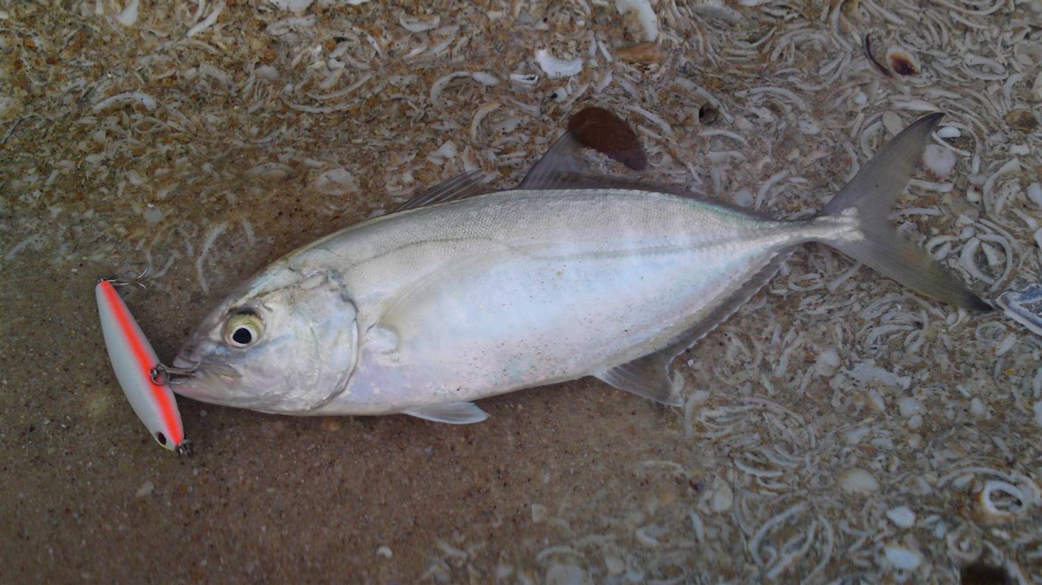| В 4:15 на берегу,собираем спиннинги и выдвигаемся к морю.На первой точке было совсем глухо,ни мальков около берега ни всплесков,ни какого другого движения.....лишь редкие волны и море как стиральная доска. Штудирая двумя спиннингами берег и постоянно двигаясь,и переодически меняя приманки разных размеров и цветовых гамм,в попытках подобрать ключик к безклевью.....у меня случается бурун за s.p.m-ом. Следующий бросок в ту же точку,несколько подергиваний спиннгом и кто-то так очень делегатно тянет мою приманку в море,делаю подсечку,чувствую очень хорошую тяжесть на том конце.... буквально с пару секунд сход. Снова заброс,даю приманке сесть на дно,несколько взмахов кончика,и следует потяг.........подсечка и словно кирпич кто-то снова виснет и не дает себя сдвинуть... моя бранзинка входит в легкий ступор,...тяну на себя....и тяжеловес на том конце все же начинает поддаваться...медленно подкручивая отваевываю метр за метром и вот показывается идя боком.. ..денис гигантских размеров. Подзываю напарника,он также ставит спм и начинаем вместе совершать геноцид,а по другому это назвать и нельзя,на каждом забросе ,после приземления приманки,и как только она заводилась,денисы били ее словно голодные зимние лавраки........буруны,плехи по воде...................и спиннинги в дугу,2-ва постоянно жужжаших фрикциона.....и каждую минуты новый рыб выезжает на берег на животе,секундой следует снятие с крючков и отбрасывание тушки в гору которая образовалась за спиной у каждого из нас.Такая рыбалка продолжалась примерно один час,солнце начало пригревать силнее и рыба ушла,но вместо нее пришло осознание того что было сделанно и как это все нести обратно.....