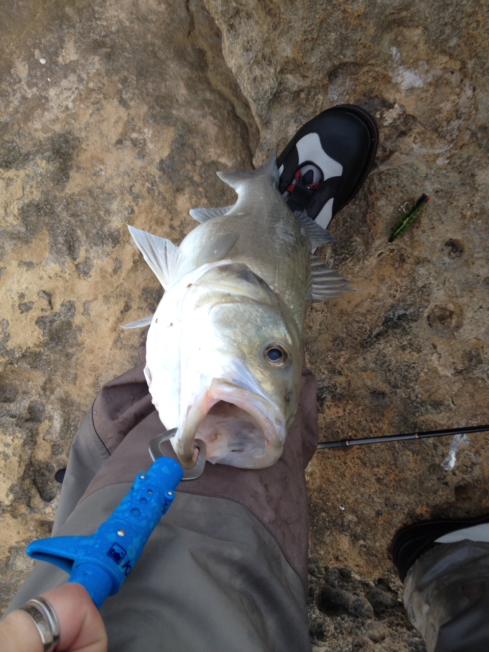 | Вчера около 7 утра. Видел его промыслы несколько раз. Сначала слева, потом справа. Кидал в обе стороны и только через минут пять он всё таки соблазнился и ударил по Ю-зури. Незабываемое зрелище когда видишь весь этот процесс. Его прыжок и удар. Я его вытягивал минут 10-15, хз, всё смутно было - адреналина полные штаны Помню даже крикнул что то пару раз. Хорошо хоть место дикое, кроме меня и тучи чаек, никого. В общем, вот он красавец: 63 см (весов ещё не купил, а надо!)