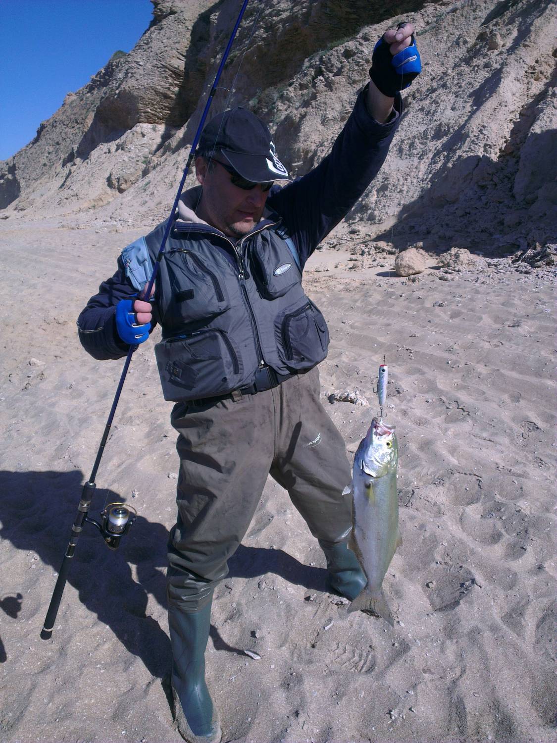 | Сегодня поехал осваивать новые,для меня места .В 5-00 на берегу. Волна,накат, погода сказка. Начал по тёмному на топ вотеры, но выходов не видел. На рассвете перешел на воблеры. В итоге ,всего три выхода лаврака. Первый, слишком маленький реабилетирован, второй взят на обед, а третий, зашел на риф, в результате потеря любимого воблера, Tide Minnou Surf DUO. Все поклёвки на него.Пришлось сматываться и ехать по магазинам искать ему брата.
