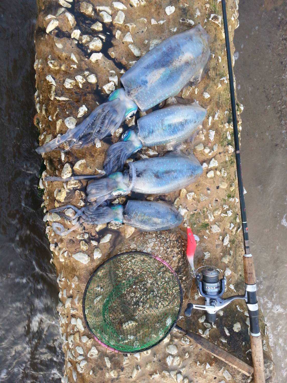 | что сказать вышел в пятницу на море, поискал по нчалу головоногих, нет трудно было искать никак не хотели я уж подумал из-за надвигающегося шторма. потом вспомнил случай, кк-то было что заброшенную бубу пока водичку попил то да сё кальмар взял, вот и подумал, не буду вести, посмотрим. что будет. заброс, минуты полторы, чую кто-то шевелится. подсёк тяну. неслабо. подтягиваю, нихрена себе, за ним ещё один покрупнее прёт, блин подчерпнуть его чтоли??? но он слинял. заброс с пол минуты и потяг. опа похоже тот самый, блин подсак моловат, с трудом поместился. неважно потом ещё пара, ни и перешёл я к поиску рыбы, но результатов некаких, в общем лучше-бы продолжил с головоногими )))