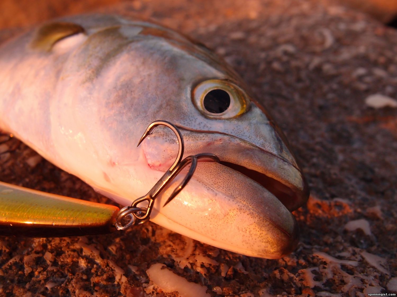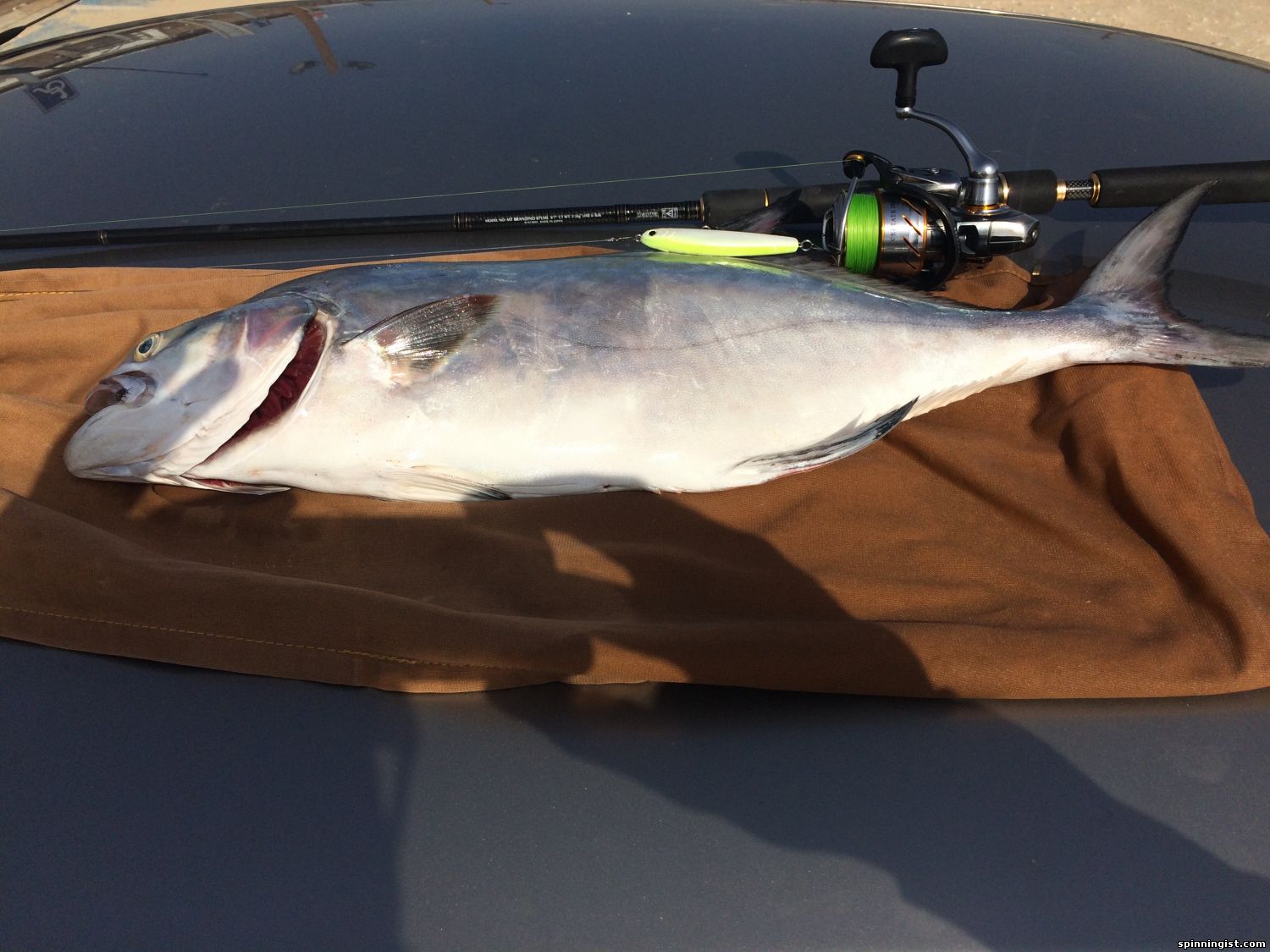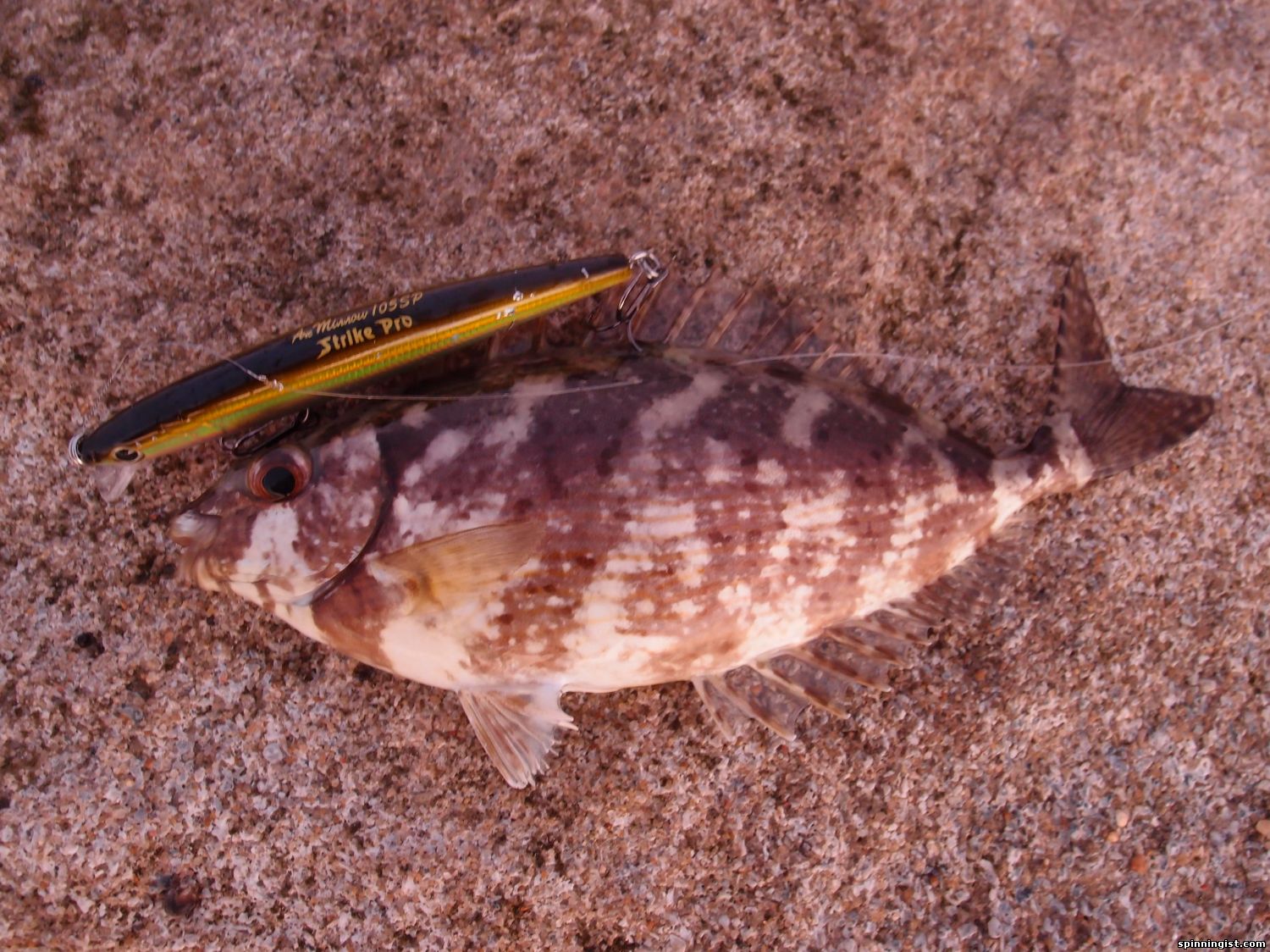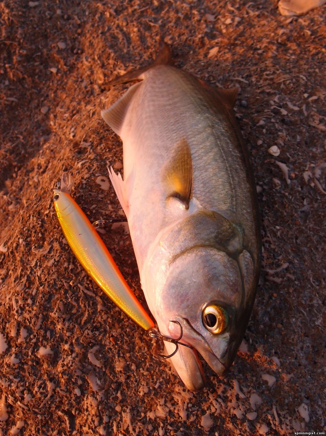 | Вот наконец-то появилось пару дней хофыша а тут и море норм и погода, не так как прошлые хофашим, что не хофышь по 2-3 дня а волна 3 метра или дождь с грозой. А тут все прикольно волна 04-08 метра погода супер. Был вчера, как говориться "загорати ходил" рыба может была но не активная. Пришол сегодня в 6 утра волна должна была быть 0.5 м а была чуть больше но все класно было накатиком пенка ямы камни и т.д НО я простаял до 7.30 часов не видел не одного всплеска не одного движения не одного чего то крупней лодошки, не говоря уже о ударе. Но решил не растраиваться а кидать и кидать и крутить и твичить не верить в то что вижу а кидать куда счетаю преспективно. Кидал rich палка branzino 87lml катушка certate 2500 13 г нитка ygk 0.8 x8. Тут при очередном забросе в район где вода высокая между волнами в дальнию часть ямки, два оборота и бззззз я аж в первые секунды не понял что случилось, потом полные штаны удавольствия .... А нитка уходит и тут начал думать что там, если лаврак должен устать фрыкцион затянут достаточно нормально, гумбар бы прыгал, а тянет как паламида но нет паламида рывками , тарахунов нет сейчас вроде что же это....тянет без остановки на глубину как паровоз... Так может минуту смотрю нитка уже заканчиваеться и тут занервнечал я , шпуля родная, можно перетянуть если на пол сантиметра повернуть фрикцеон , тормозить руками тоже не понятно что за чушка там.... Решил не рисковать и затягивать фрикцион , полтора оборота и оборот до упора это примерно,затянул. Рыба идет но редко так что бы не оборвало. Начал искать куда тянуть , везде камни, нашел местечко с песочком и начал отходить назад. Рыба перестала сопратевляться , это меня насторожело, боялся что рывок даст но нет палка отработала и фрикцеон был затянут как надо... Рыбу не видел Пока волной не выкинуло ее на берег и я её не отбуцал на песок. И вот мои первый Арианчик.