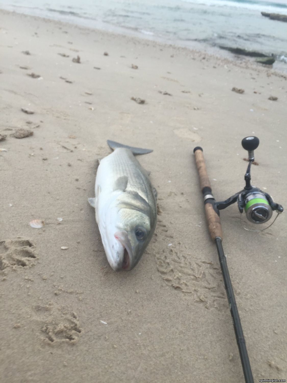 Затем, около 7 утра, хороший лаврак взял метрах в десяти от меня. 55 см. Это самый крупный(по длине) лаврак из когда либо пойманых мною. Новый личный рекорд!