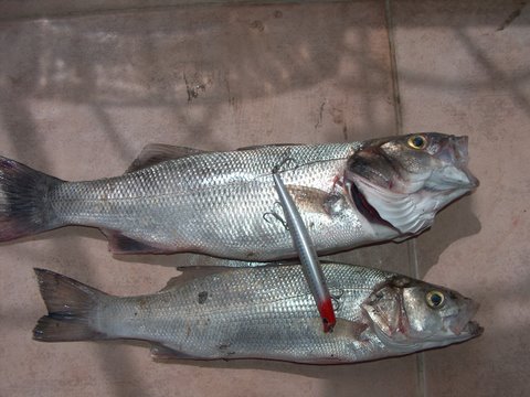 | Сегодня мы с Костей отправились ловить сарагуса,первым был пойман мной неплохой лаврачёк,Костя цепляет 3д флет и на третьем забросе кричит есть, неплохой сарогус наверно тридцатник после продолжительного вываживания робко предпологает неужели сороковник и тут до меня начинает дохадить что неплохо было бы помочь товарищу.в итоге сарагус оказался тарахуном семидесяти см длиной и весом свыше четырёх килограм рядом с ним мой лаврак на 45 см кажется мальком. снасть Кости зенит 3-14г сол 2500 и плетня 6лб. Костя снимаю шляпу.достойный противник и достойная победа.