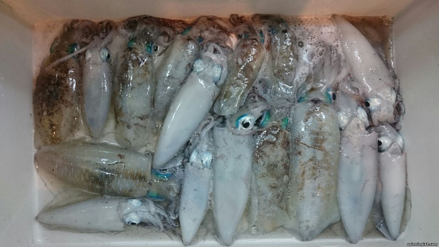 | Имея одного замороженного и в ожидании друзей решил попробовать доловить пару кальмаров. Брали на паузах при довольно агрессивном дёрганьи. Китайская буба красная #3