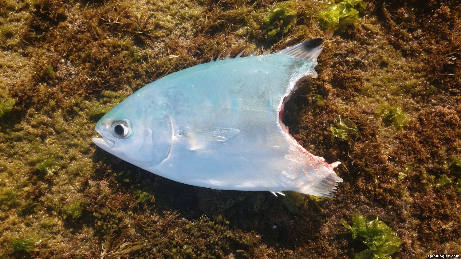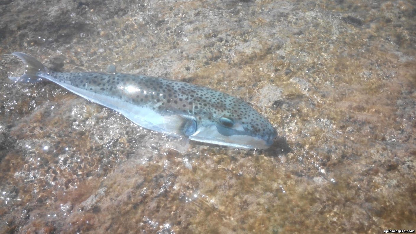 | Вчера с 15 до темноты - десяток даг-села и один сход чего-то огромного. Скорей всего, судя по бордовому телу с белыми пятнами и характерной форме хвоста - локус адом. с59 в 10-м размере не для такой рыбы - видимо попал в кость и не просек - оно и к лучшему, вытащить такую махину форелевиком до 5 гр - нереально. Сегодня с утра пару сарагусов, даг-села. Попал на стайку какой-то мелочи, которую периодически атаковали тролусы и еще что-то покрупней. Хищников словить не удалось, зато перейдя на мелкое колебло на каждом забросе вытягивал анчоусообразную рыбешку с крупными глазами и мощным лбом. Фото не делал, лень было лезть на рифе за телефоном, да и безбородые крючки освобождали рыбку как-только она выходила из воды. Также в попытках словить охотников за мальков словил абунафху(первая моя большая рыба тут). Что-то вяленько она сопротивляется, ожидал большего от рыбы весом около кг. Своим форелевиком припарковал на риф очень быстро и безпроблемно. Аж обидно.