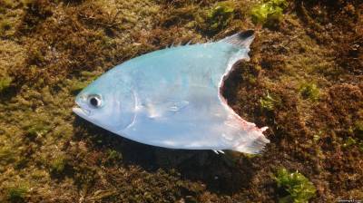 | Судя по профилю откуса и отсутствию следов зубов это фугу или как вы ее называете абунавка. И это - не очень большой экземпляр, случалось видеть укусы и побольше.