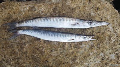 | Уух, успел! С наступающим всех ! Морской дед мороз наконец то сжалился надо мной и послал мне вот такую парочку барракуд. Был ещё мини кальмар повисший на воблере, абунафка, и серьезный удар, визг фрикциона и сход скорее всего паламиды. Все происходило с 5:30 до 7:00 на таид Миноу