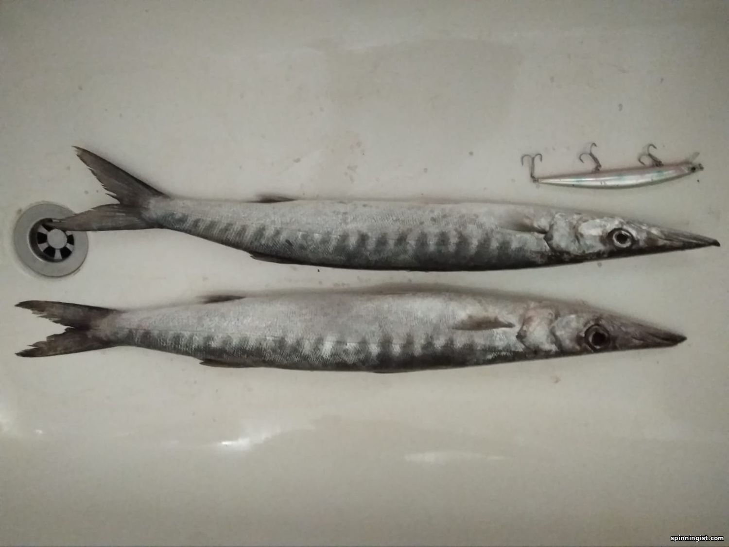 | Барракудки. Раненько где-то в 4:20 . китайская тайд миноу 140. На равномерной проводке, я вообще-то тпытался понять насколько далеко я бросаю свой новый воблер, и равномерно мотал считая обороты...