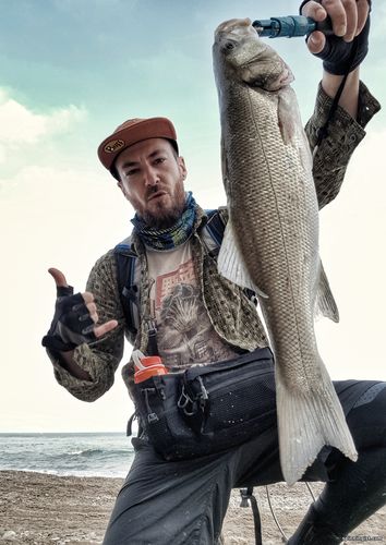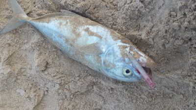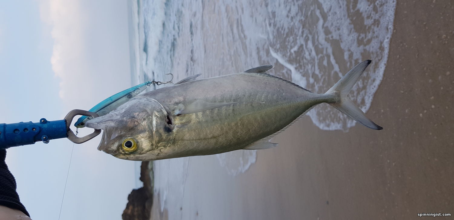 В общем, приехал на рассвете на пляж, обошел все ямки, обратки, рифы и остальные всевозможные. потенциальные места, и фигушки. Нуль. Покурил (точнее попарил ибо не курю табак уже третий год), поболтал с с  комрадами о горькой судьбе рыбака в Израиле, повернул назал и через пять минут обрыбился)). Причём хорошо обрыбился smile . Тарахун сопротивлялся получше лаврака и дал бой не на жизнь, а на смерть (в принципе так и вышло), хотя в два раза меньше. Лаврака я вообще не ждал так как был уверен что этот тип рыбы давным давно вымер, а все ваши фотки это фотошоп и махинации. Собственно, я был немного в  ̶а̶х̶у̶е̶ шоке от такого поворота событий.