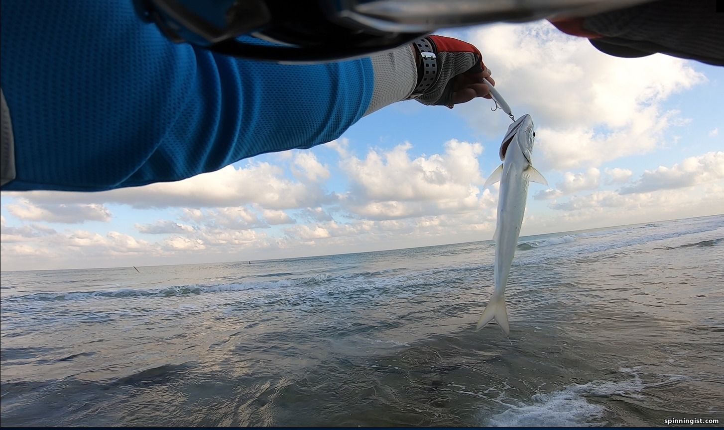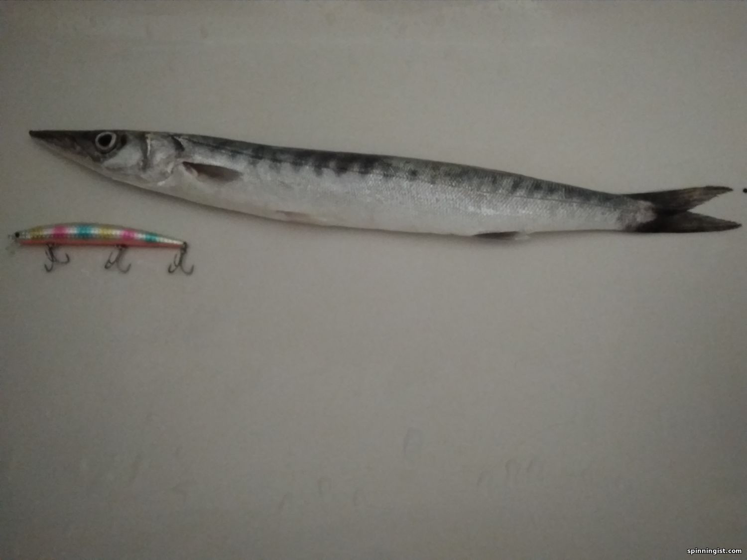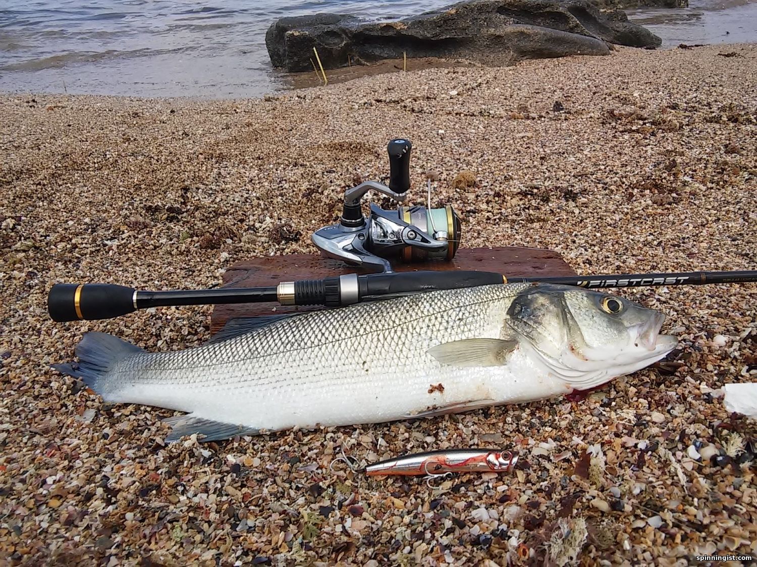 | Вчера вечером в половине восьмого. Grafitelider Corto 742L-T lure 0.8-10.0g. Нитка R -18 PE 0.6 зеленая. Поставил sammy 65 и на втором забросе в метрах тридцати получил килограммовый подарок от Нептуна. Последнее фото этого sammy, так как при третьем забросе в 5 метрах от тетраподов получил мощный удар. Катушка Stradic 1000 взвыла, спин согнулся в рог видать, что то большое, скорее локус начал метаться из стороны в сторону и когда я уже был уверен, что возьму его он метнулся влево и тут нитка лопнула. Я всплакнул за красивым Sammy и поставил Gunfish 75. Четвертый заброс подвел приманку к ногам в ажиотаже наверное слишком быстро и выдергивая ее из воды, следом за ним из воды выпрыгнул и промахнулся еще один здоровый и голодный рыб. На пятом забросе получил поклевку. После этого как стемнело, все стихло и я кидал до тех пор пока при спокойном море вдруг накатила волна и окатила меня по пояс. Азарт утих и я понял что надо идти домой.