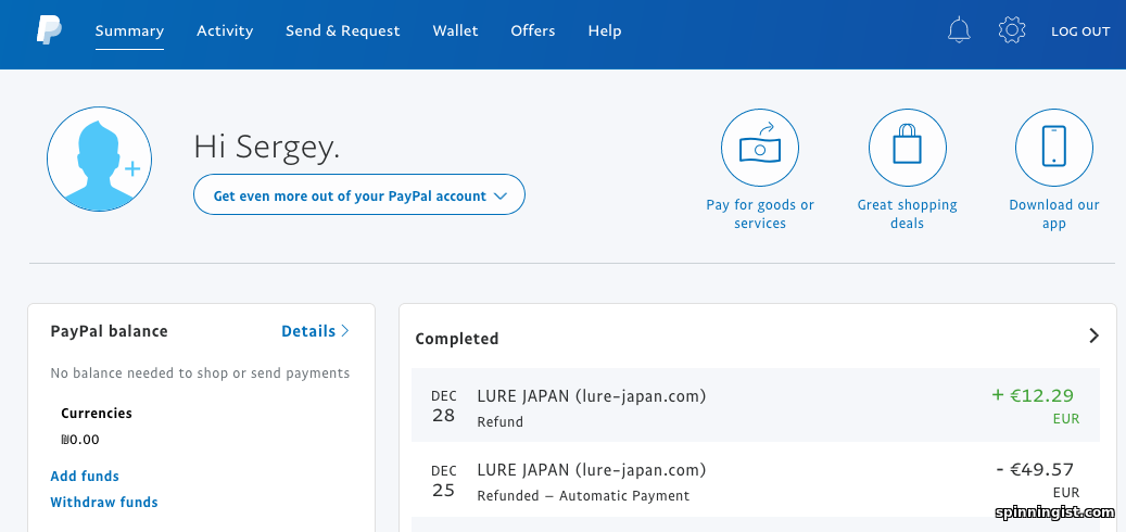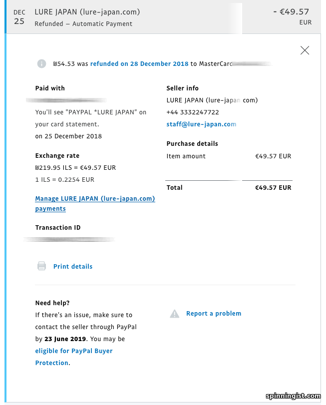 Сегодня получил от Lure Japan письмо, типа проверь свой PayPal, должен быть