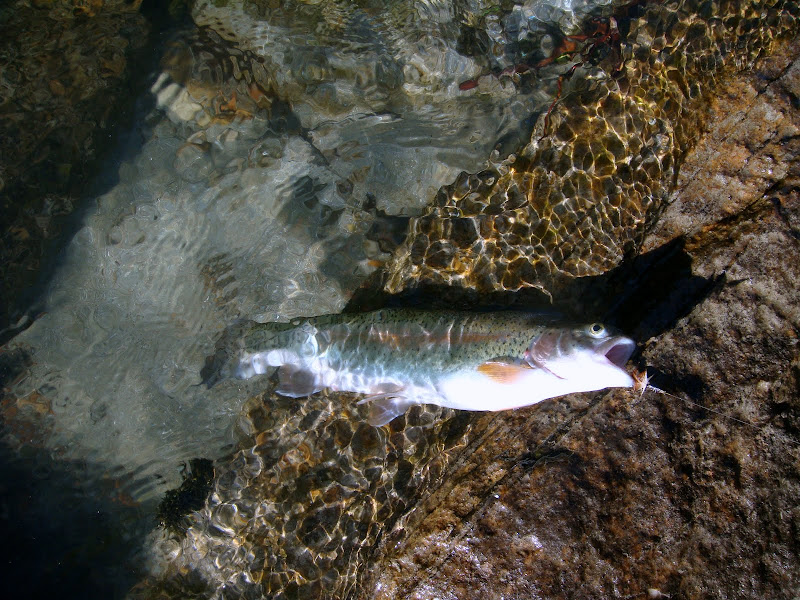 За час натаскал больше десятка разных форелек, но ни одна не превысила разрешенных 35см, и поэтому все были отпущенны несмотря на заманчивые предложения сварить из них уху.