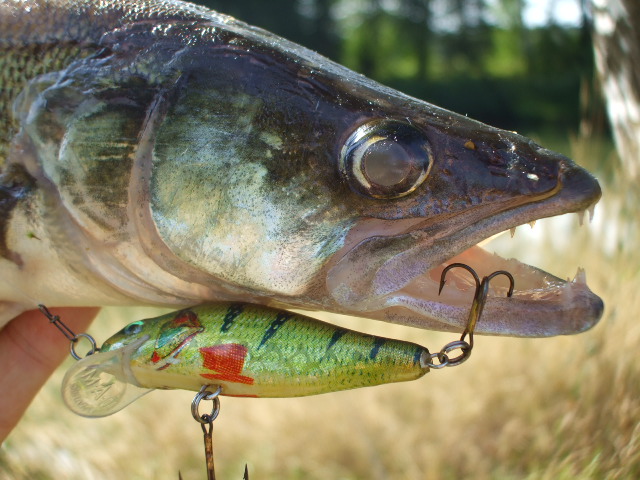 | Спасибо,И всем привет!Погода смутная,что то моросит.Перешёл на леску 020 с поводком из флюорокарбона.И вот,при проводке воблера ДАМ,уже возле берега,что то блеснуло под водой и удилище судорожно задёргалось!(Фугу!спокойно сказал внутренний голос).Щучка! Карандашик 42см.Домой,к маме.Но приятно.После долгих попыток и смены воблеров,и опять на ДАМ-полуметровая щука! УРЕ! Домой,домой,хладному роднику неправильных снастей....