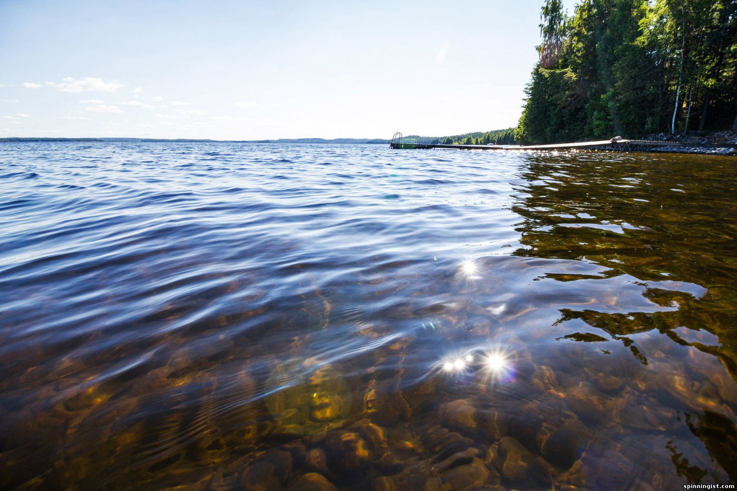 | Наша, восточная сторона озера. Очень красиво но малопродуктивно. Эхолот показывал 8-9 метров глубины уже рядом с пирсом, Паянне - самое глубокое озеро Суоми. Окушки и плотва совершали кратковременные набеги вечерами, а руссо-туристо (которые по приезду сразу же скомуниздили нашу раколовку) ловили с соседнего пирса подлещиков на 24ч/c донку. Озеро прозрачное как слеза, его вода снабжает Хельсинки.