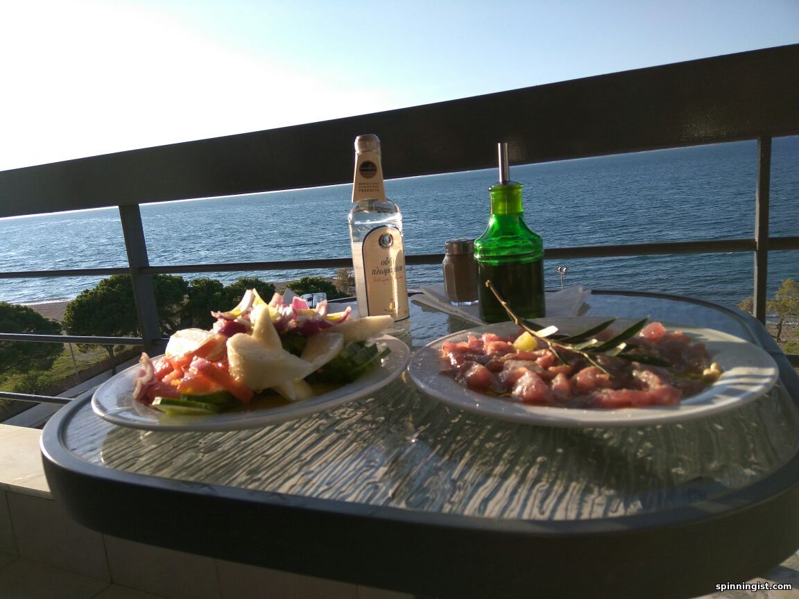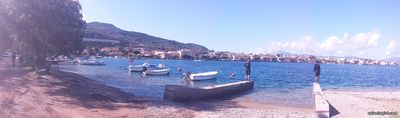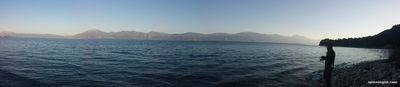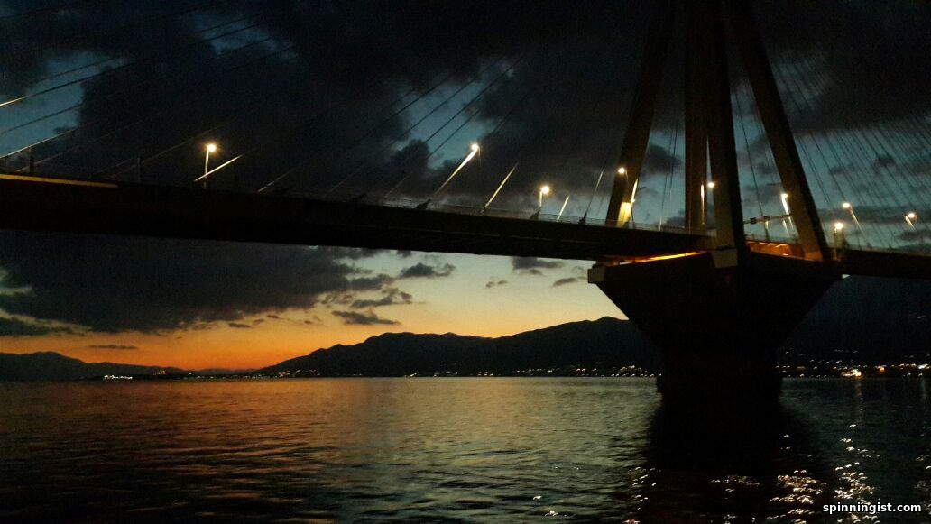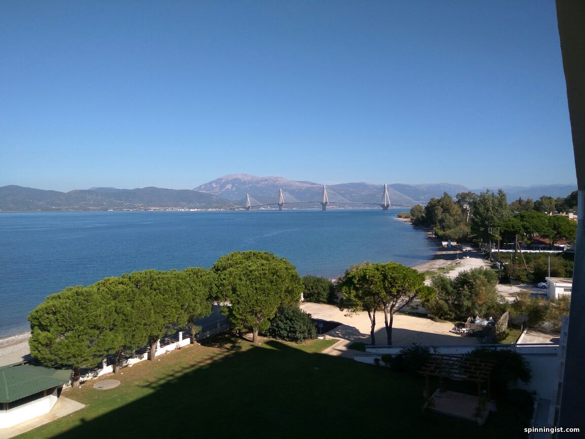 Решено было рыбачить в районе города Парта. Это 3 часах езды от аэропорта Афин. Удочки перевозили в пластиковых трубах - дешево и надежно. Никаких вопросов по поводу их перевоза в Грецию не возникло. По прилету загрузились в машину и по "скоростному" шоссе прямиком в Патру. Дорога платная, но при делении на четверых - сущие копейки, порядка 20 шекелей на брата. Сам город находится на берегу огромного залива, высота волны в котором не превышает 30см. Из окна гостинницы открываеся чудесный вид