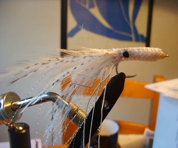 Hook: Grip Streamers and damesels no.12 Eyes: red chennile Thread: Danvilles 140 Body: olive marabou Ribbing: copper wire