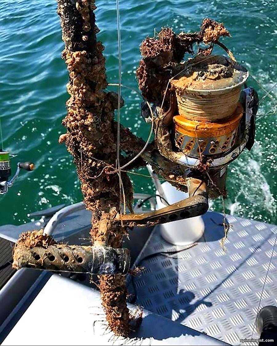 Под бортиком шпули,бывыет когда шпуля лежит полная и не часто носится на море: